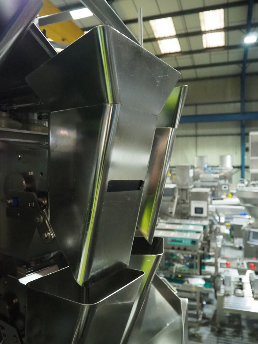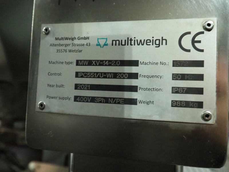 MultiWeigh GmbH 14 heads multihead weigher, type: MW XV-14-2.0, machine number: 1572, year of construction: 2021, 400 V, 3 Ph, 50 Hz, weight: 988 kg, outfeed height: 930 mm, total dimensions: 1550 mm x 1400 mm x 3250 mm. Including pallet with parts.