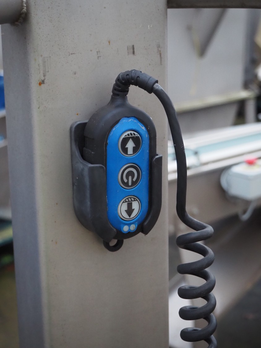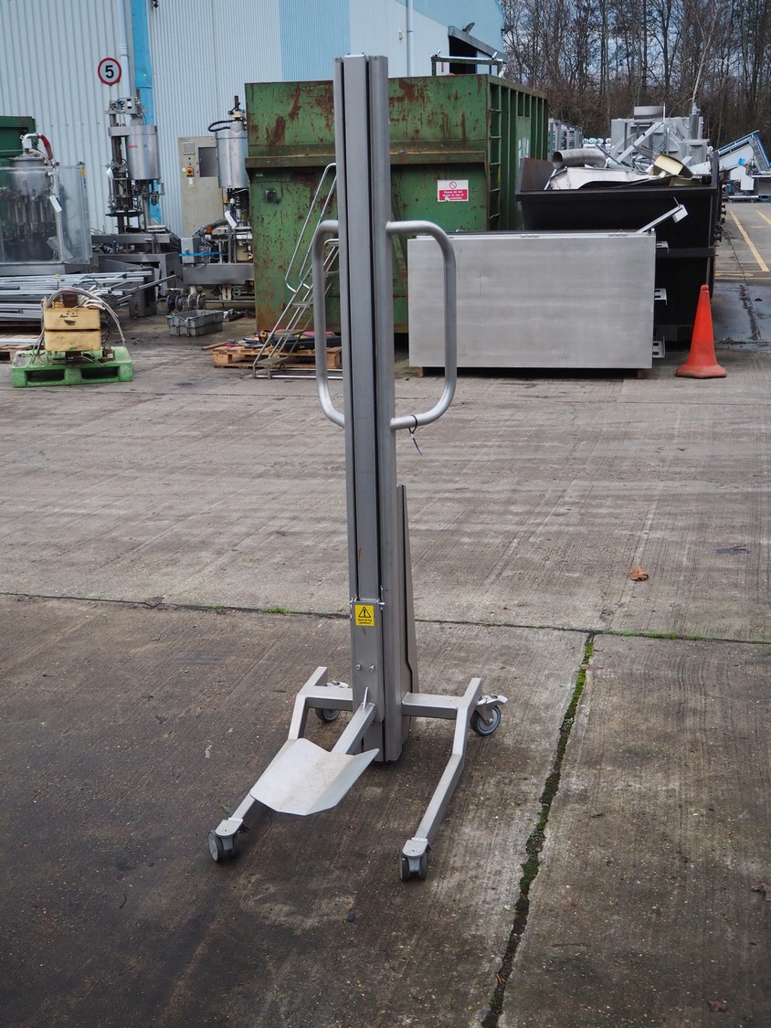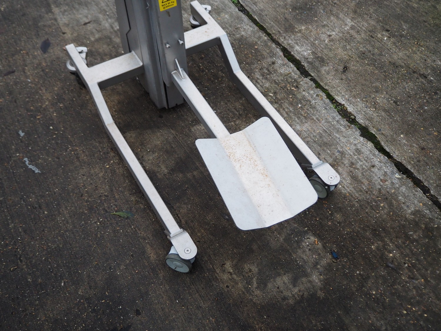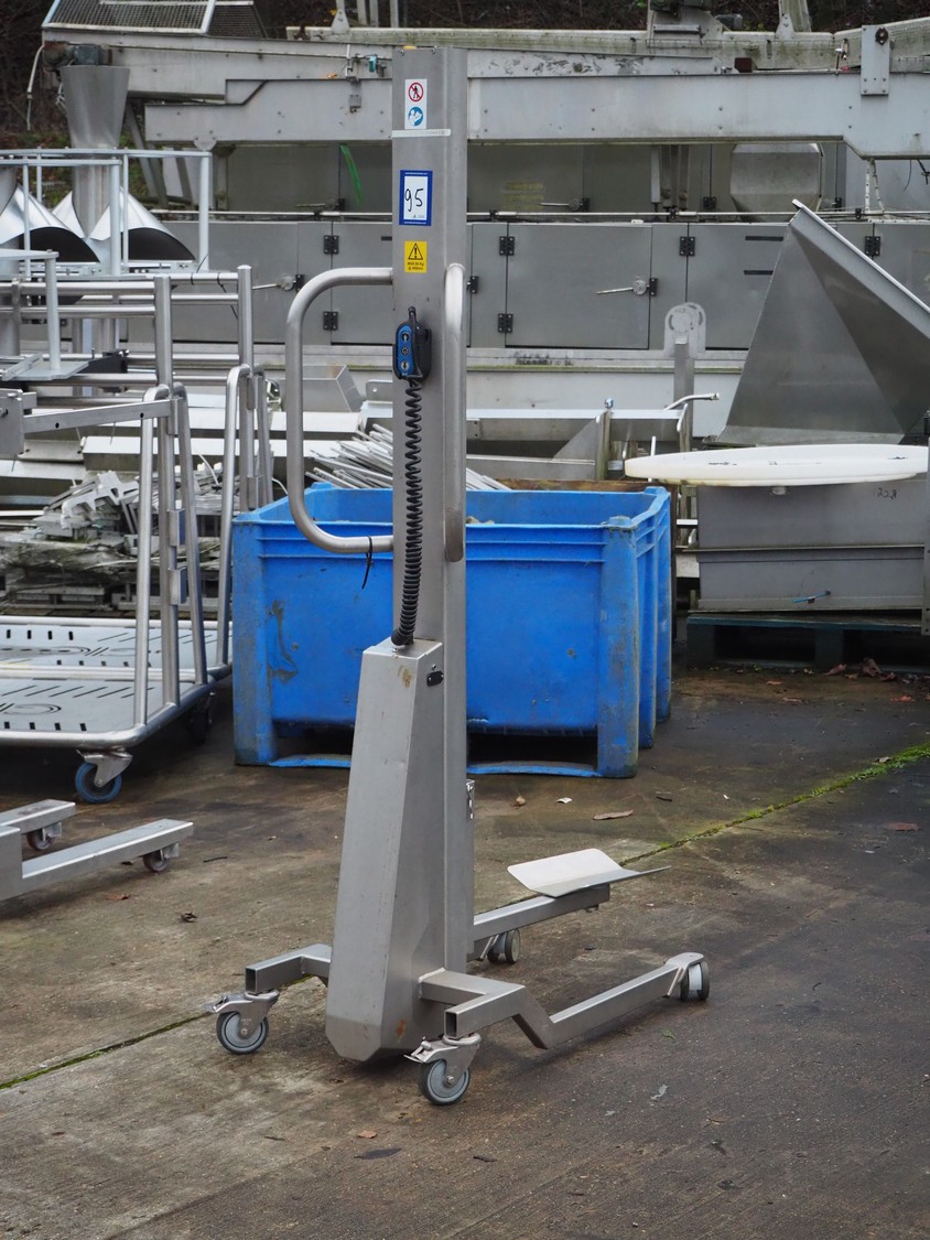 Mobile lifter for film rolls, lifting height: 1580 mm, total dimensions: 1050 mm x 520 mm x 1900 mm.