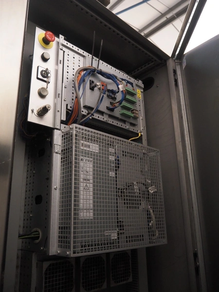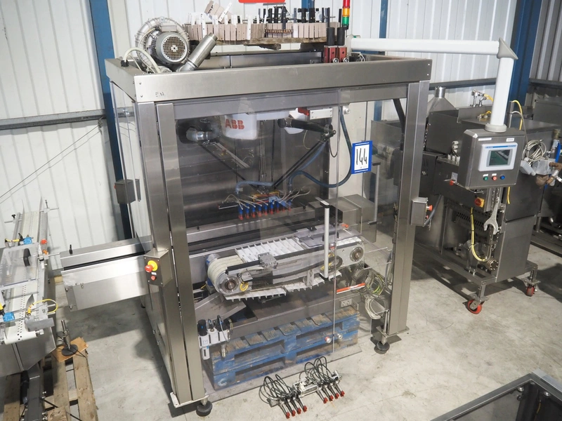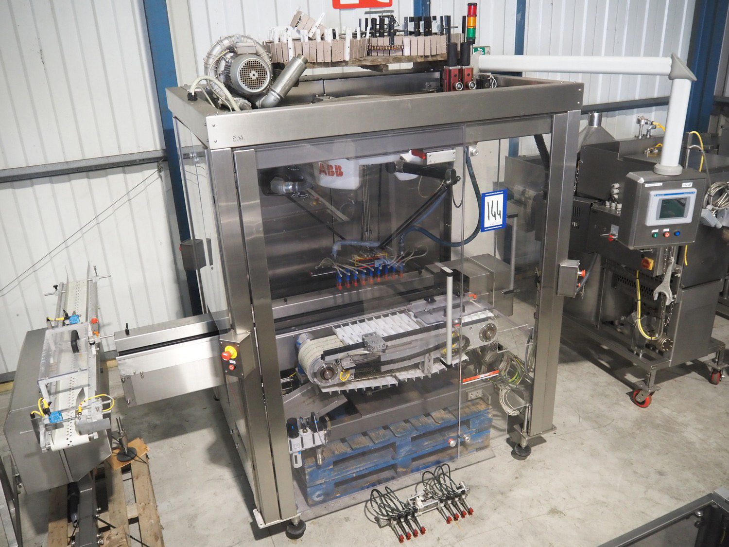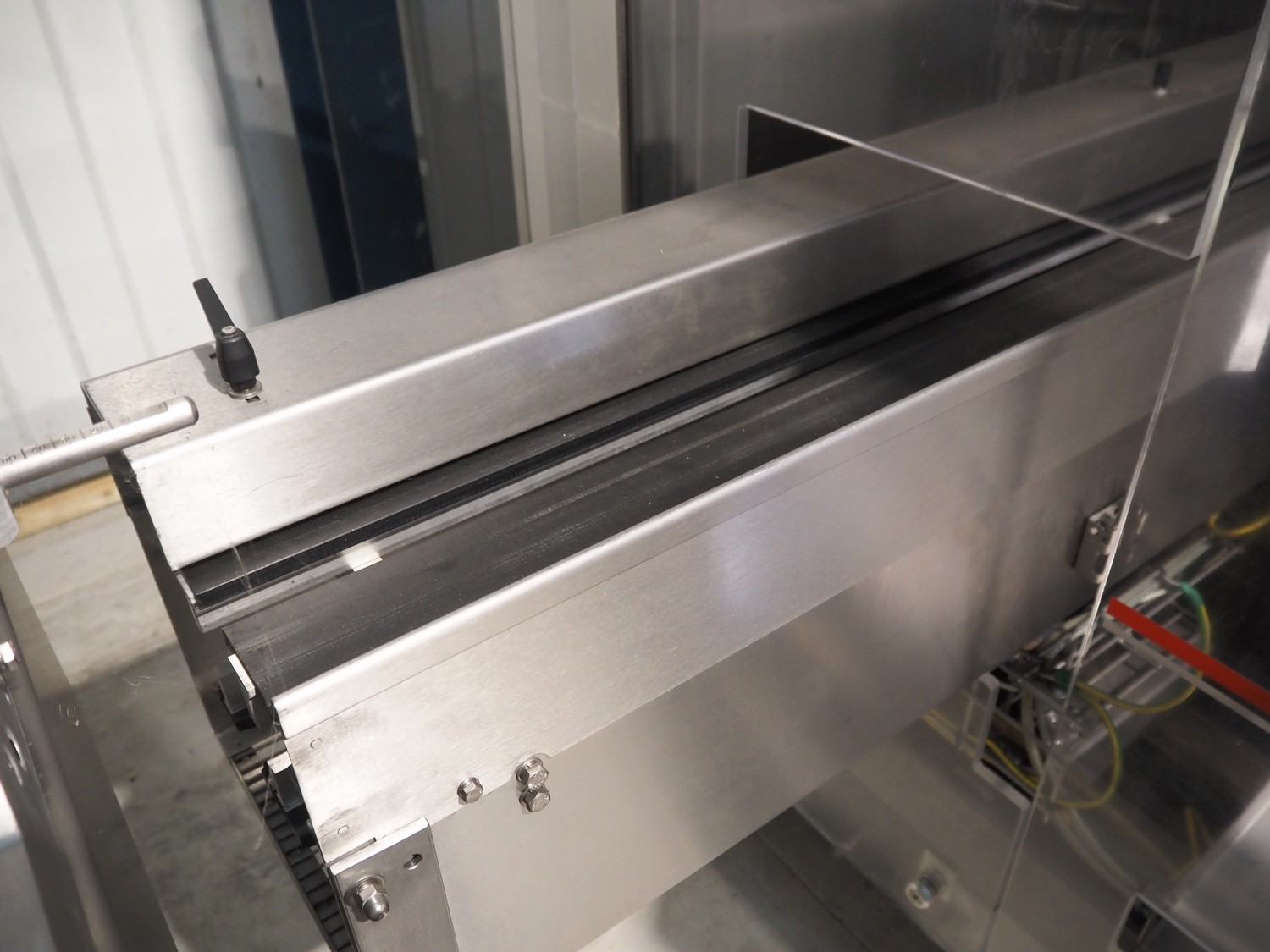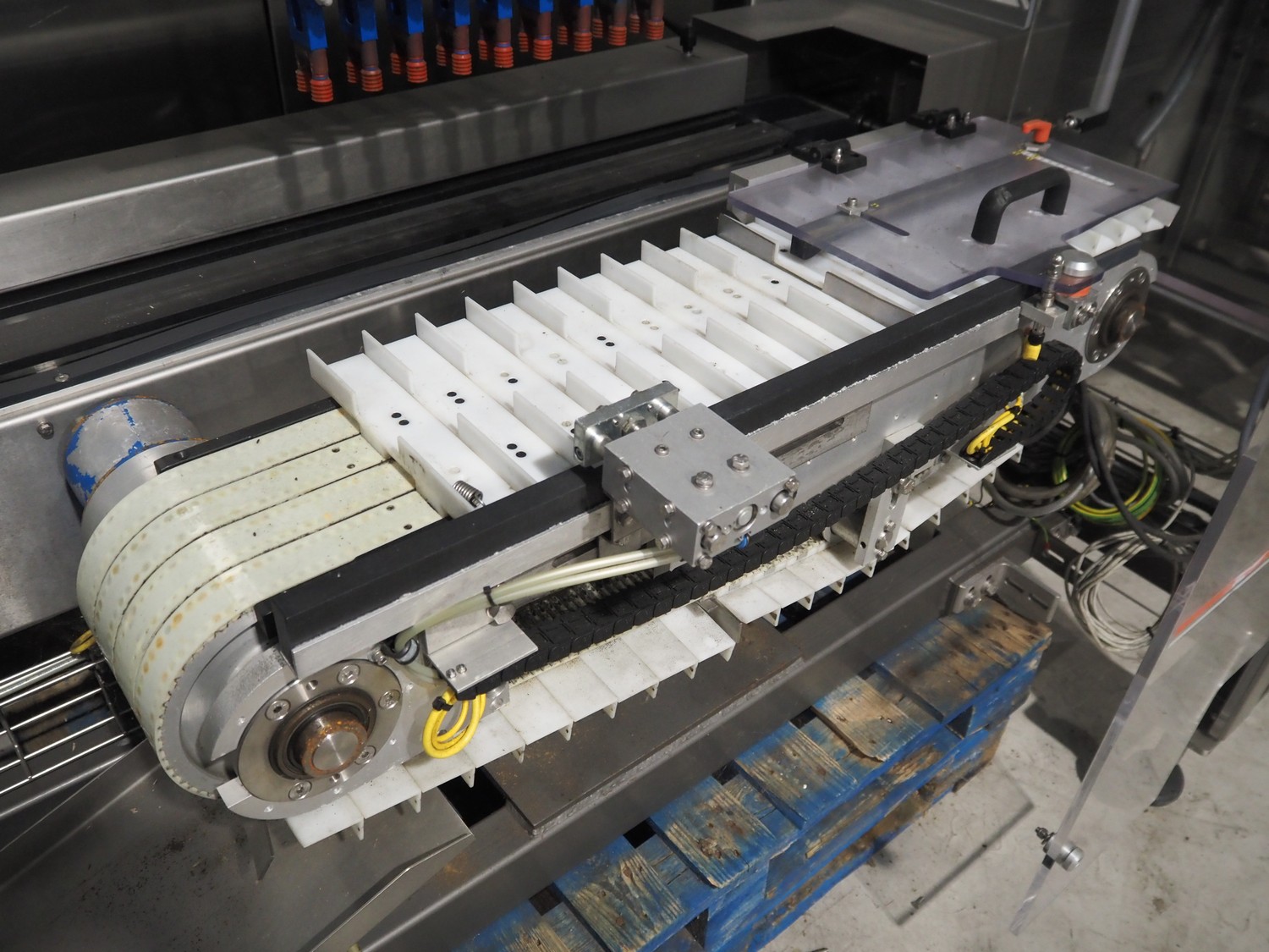 Bradman Lake robotic top loader, type: DKT, serial number: 67940810, year of construction: 2010, 400 V, 3 Ph, 50 Hz, 25 kW, belt width: 180 mm, clearance: 400 mm x 125 mm, plastic belt with dividers, belt width: 260 mm, dividers height: 20 mm, distance between dividers: 45 mm, total dimensions: 2550 mm x 1900 mm x 2600 mm.