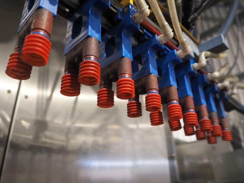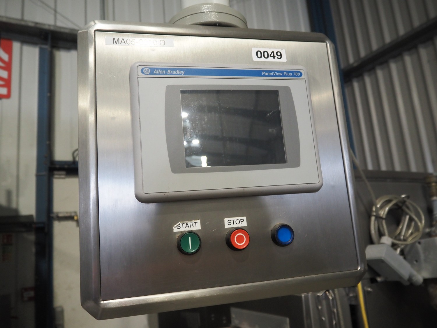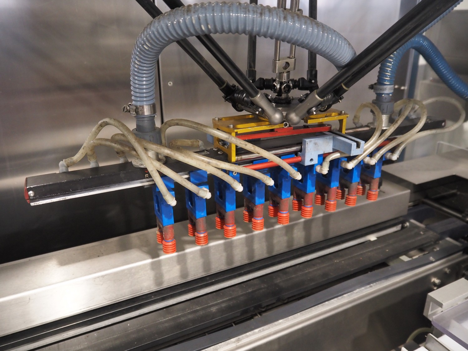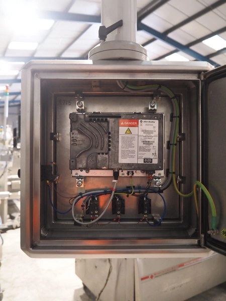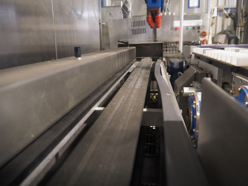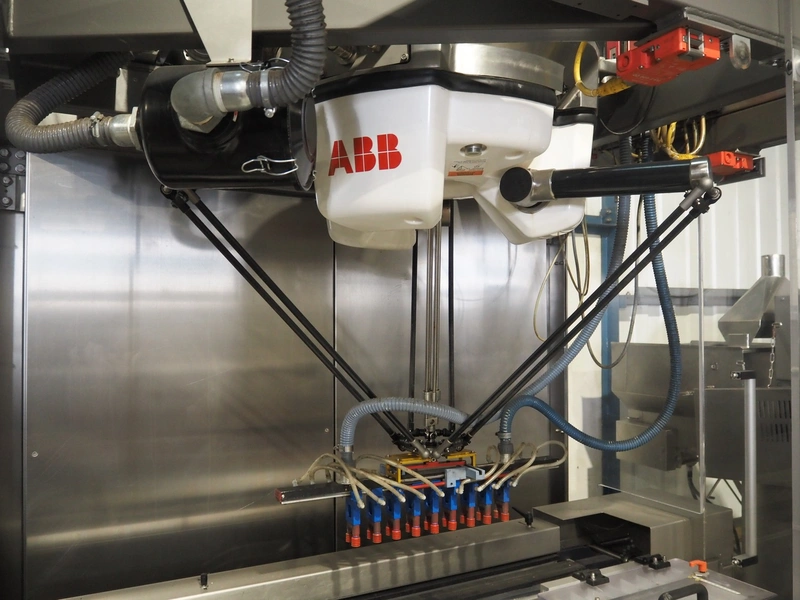 Bradman Lake robotic top loader, type: DKT, serial number: 67940810, year of construction: 2010, 400 V, 3 Ph, 50 Hz, 25 kW, belt width: 180 mm, clearance: 400 mm x 125 mm, plastic belt with dividers, belt width: 260 mm, dividers height: 20 mm, distance between dividers: 45 mm, total dimensions: 2550 mm x 1900 mm x 2600 mm.