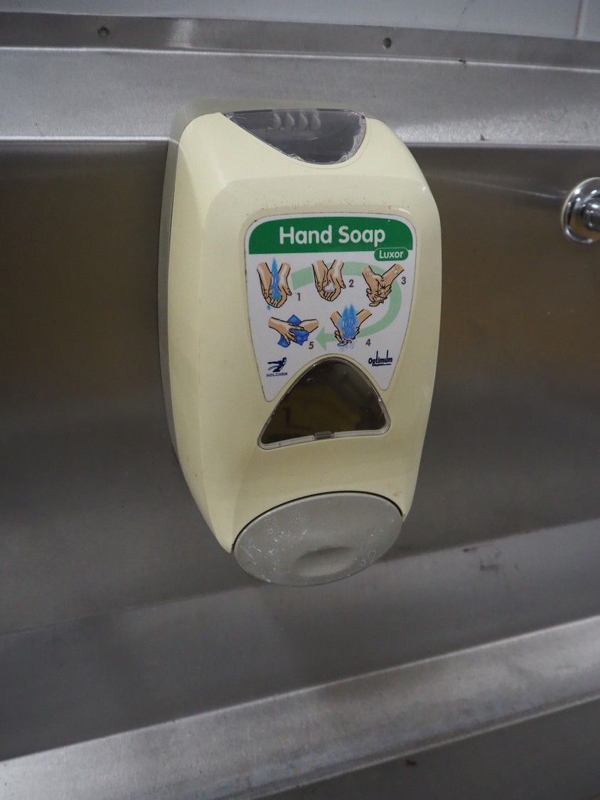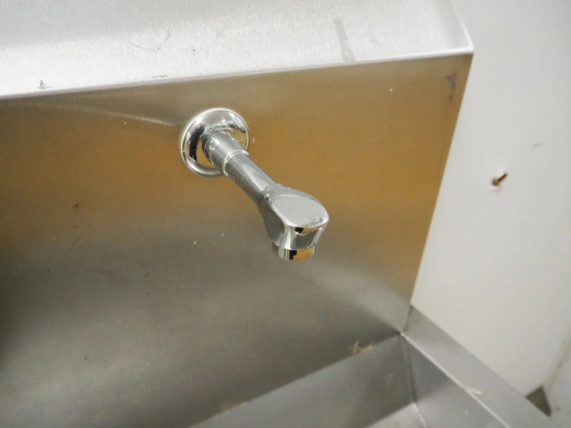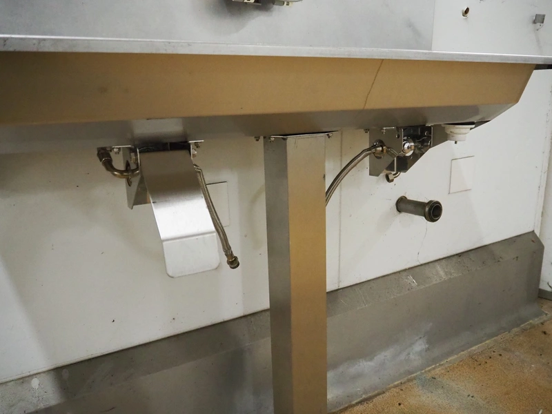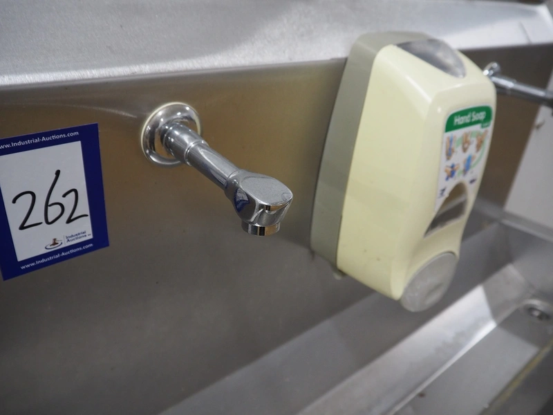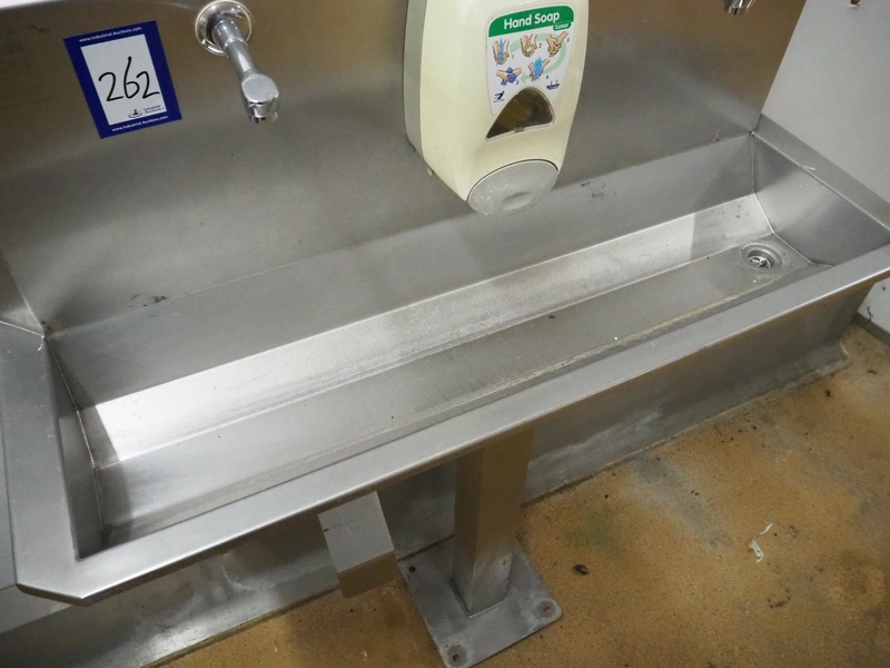 S/s sink with 2 faucets, dimensions: 1100 mm x 380 mm x 1300 mm.