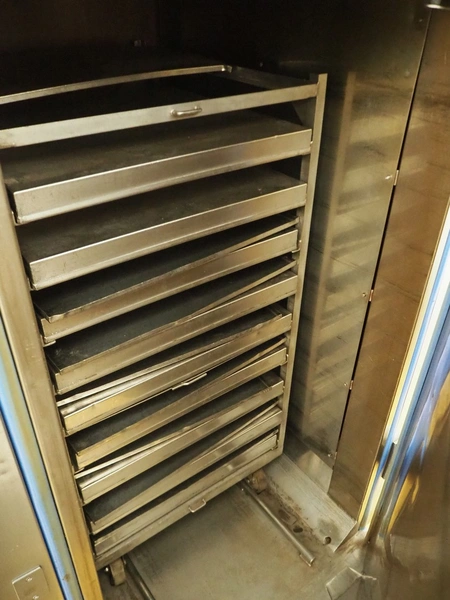 Rapid air cooking chamber with s/s trolley, 10 floors, floor dimensions: 600 mm x 700 mm, total dimensions: 1900 mm x 1200 mm x 2300 mm.