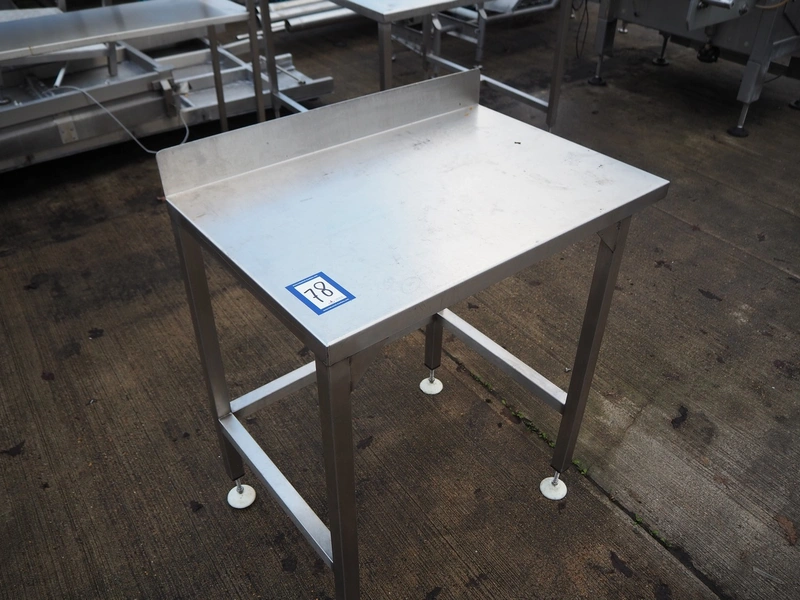 S/s table, dimensions: 900 mm x 600 mm x 970 mm.