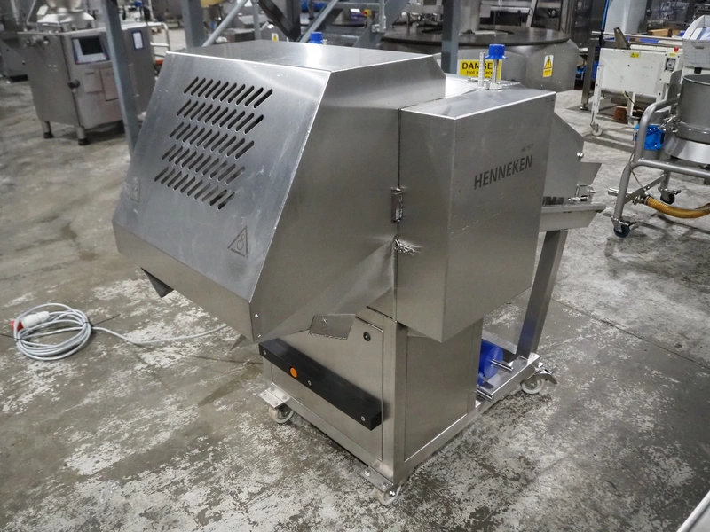 Henneken GmbH mobile steaker, type: HT 520, serial number: HT-520-3157, year of construction: 2015, 400 V, 50 Hz, 1.5 kW, weight: 500 kg, plastic belt, belt width: 510 mm, working width: 510 mm, total dimensions: 1750 mm x 1100 mm x 1420 mm.