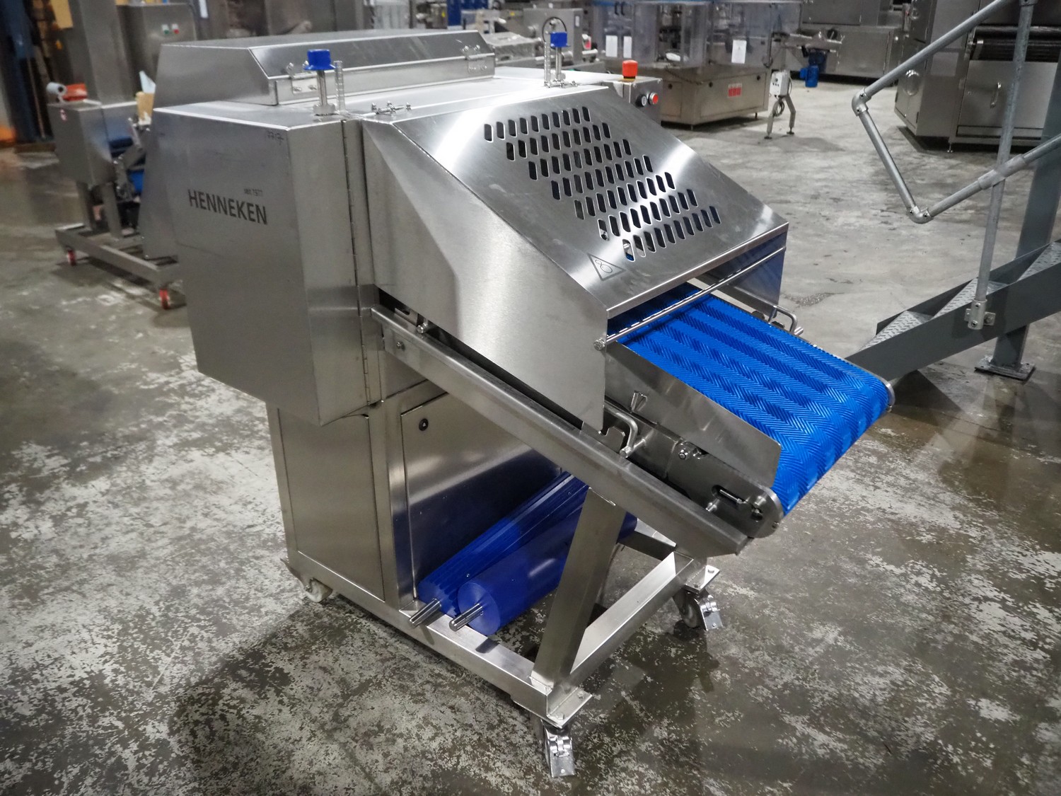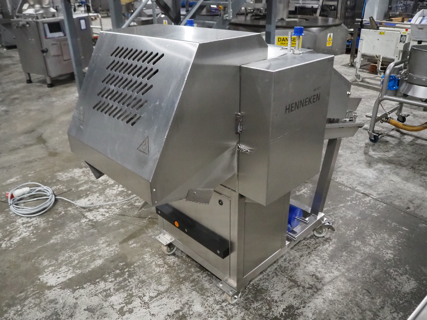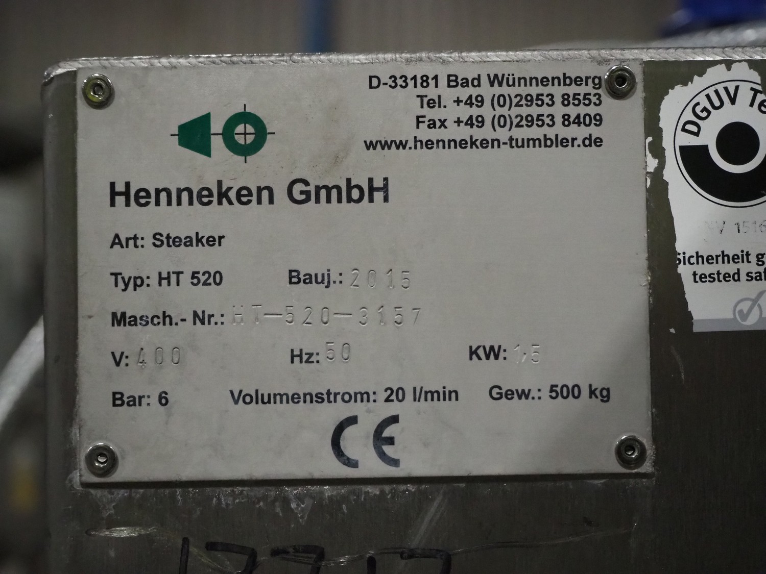 Henneken GmbH mobile steaker, type: HT 520, serial number: HT-520-3157, 400 V, 50 Hz, 1.5 kW, weight: 500 kg, plastic belt, belt width: 510 mm, working width: 510 mm, total dimensions: 1750 mm x 1100 mm x 1420 mm.