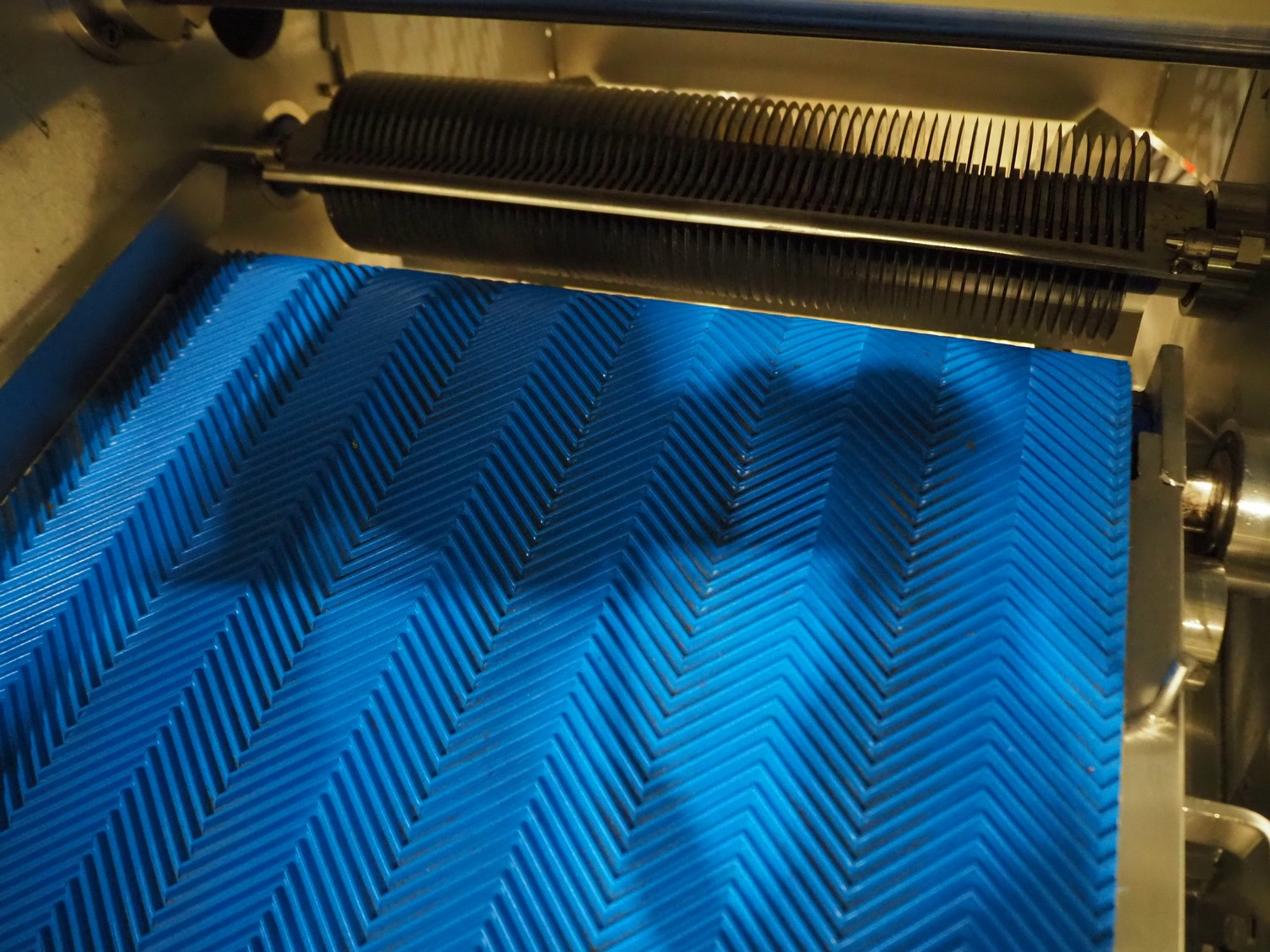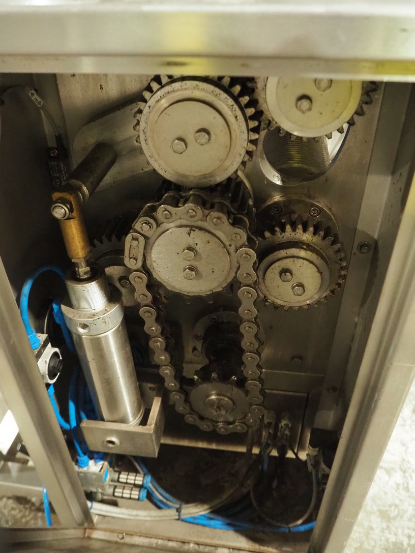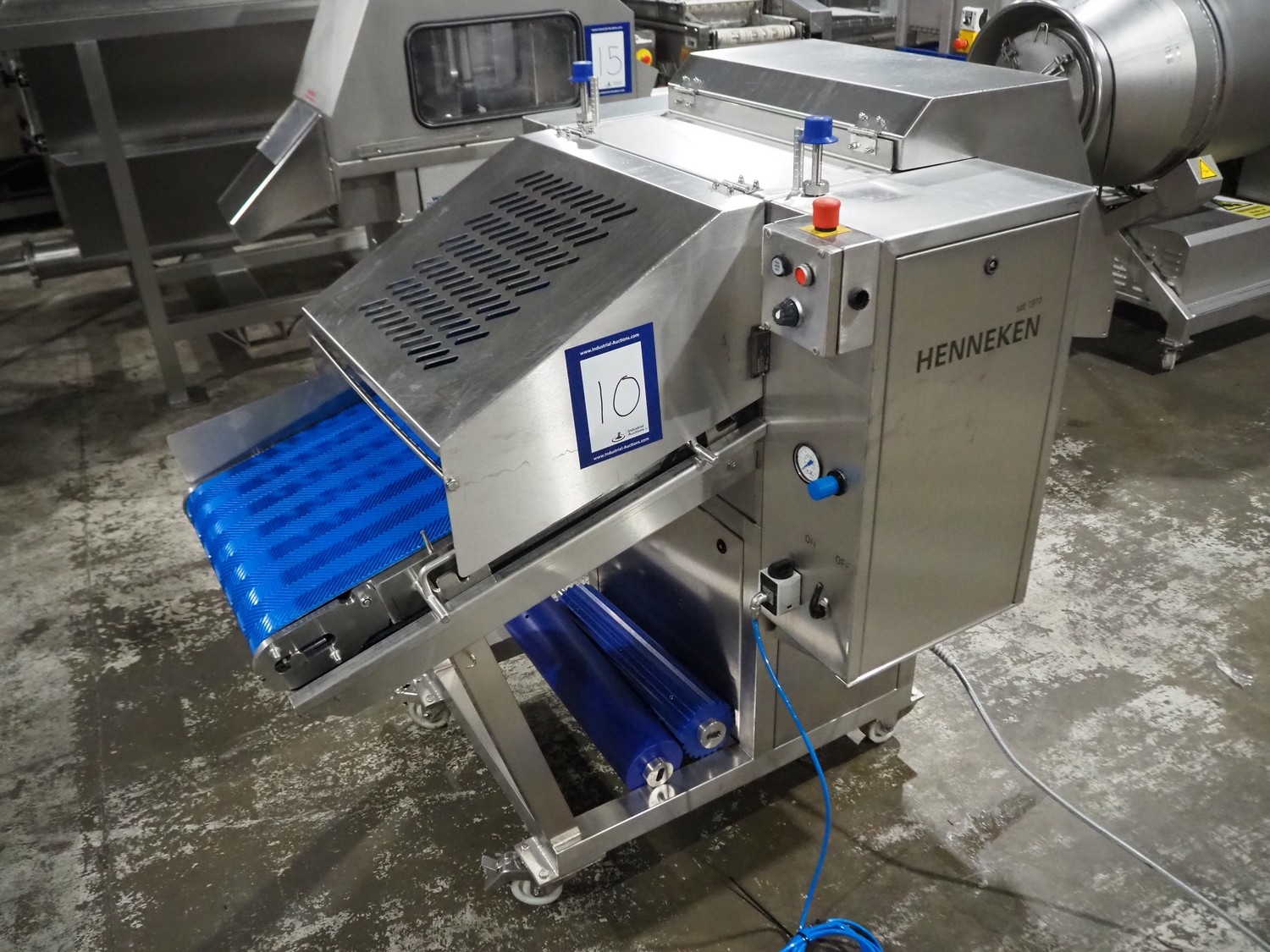 Henneken GmbH mobile steaker, type: HT 520, serial number: HT-520-3157, 400 V, 50 Hz, 1.5 kW, weight: 500 kg, plastic belt, belt width: 510 mm, working width: 510 mm, total dimensions: 1750 mm x 1100 mm x 1420 mm.