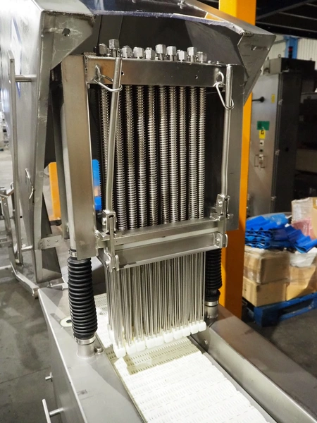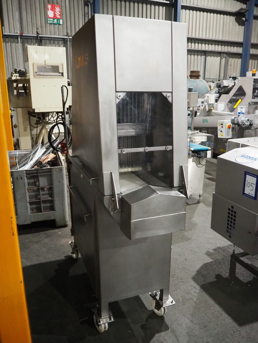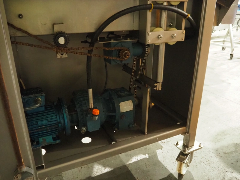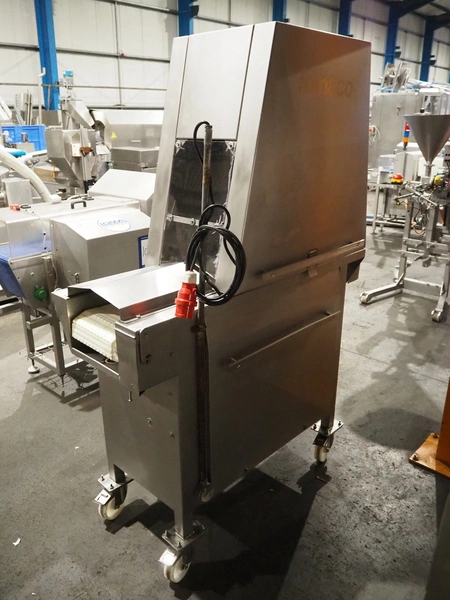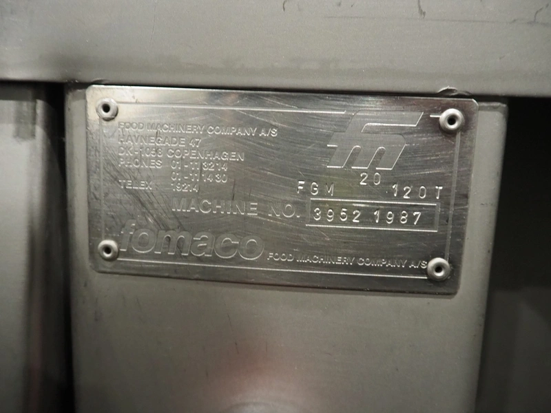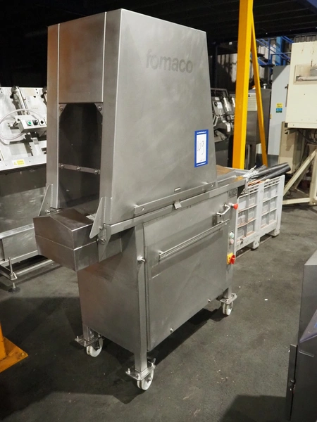 Fomaco mobile tenderizer, model: FGM 20 120T, machine number: 3952 1987, plastic mesh belt, belt width: 240 mm, total dimensions: 1450 mm x 650 mm x 1900 mm.