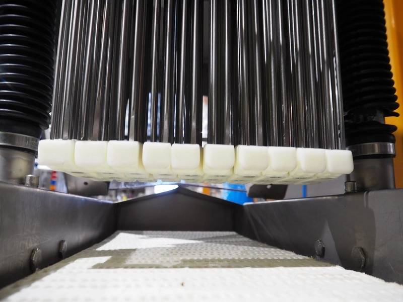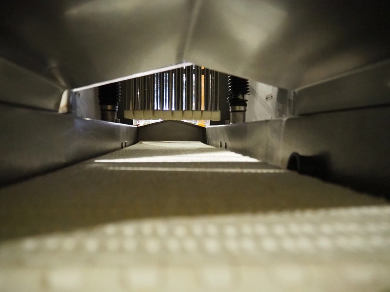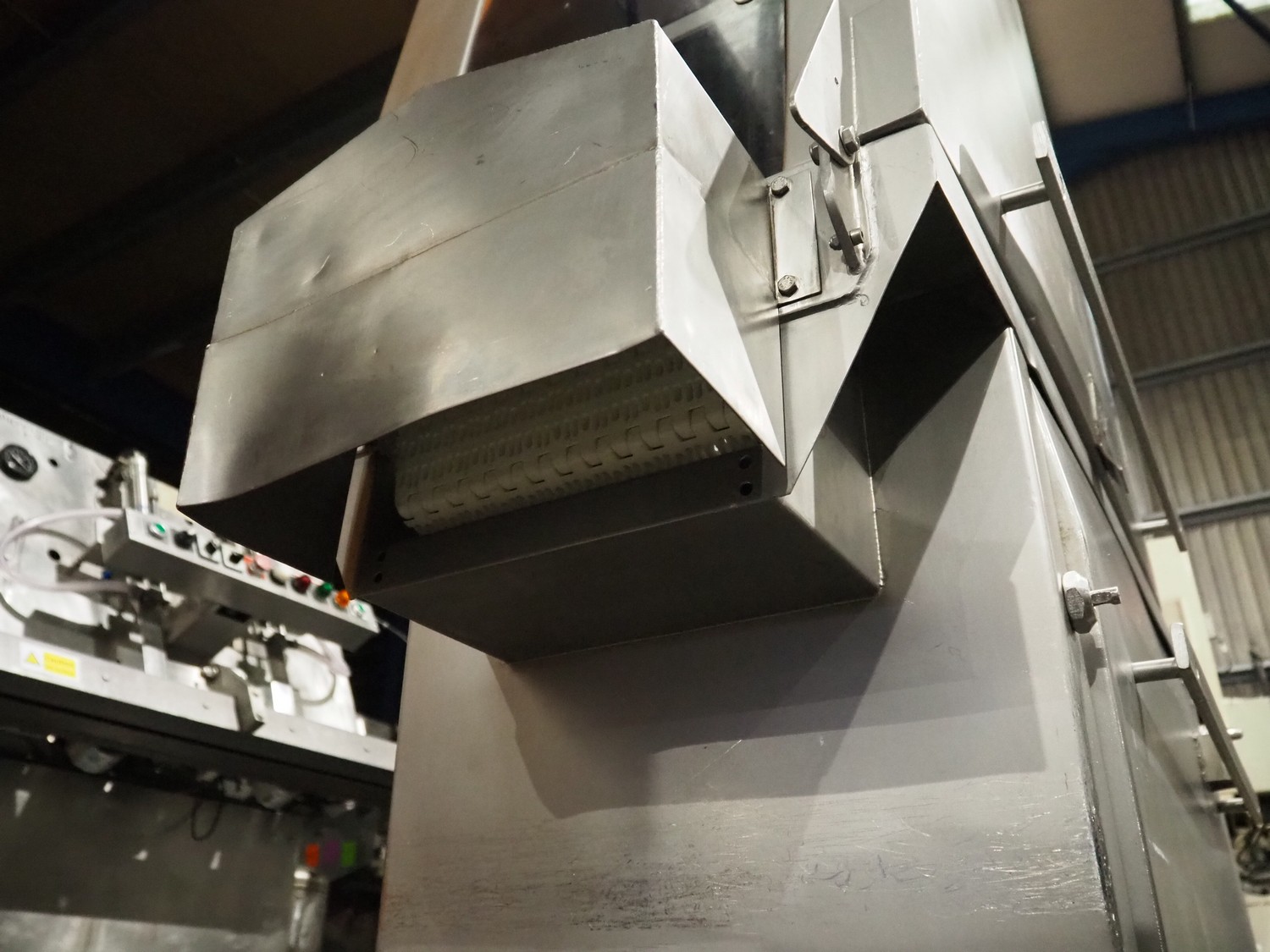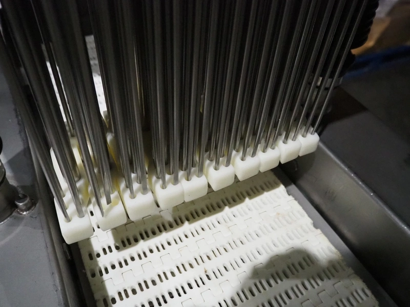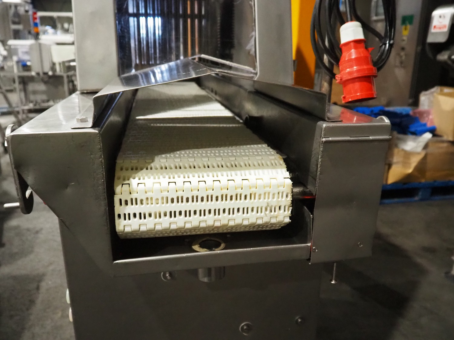 Fomaco mobile tenderizer, model: FGM 20 120T, machine number: 3952 1987, plastic mesh belt, belt width: 240 mm, total dimensions: 1450 mm x 650 mm x 1900 mm.