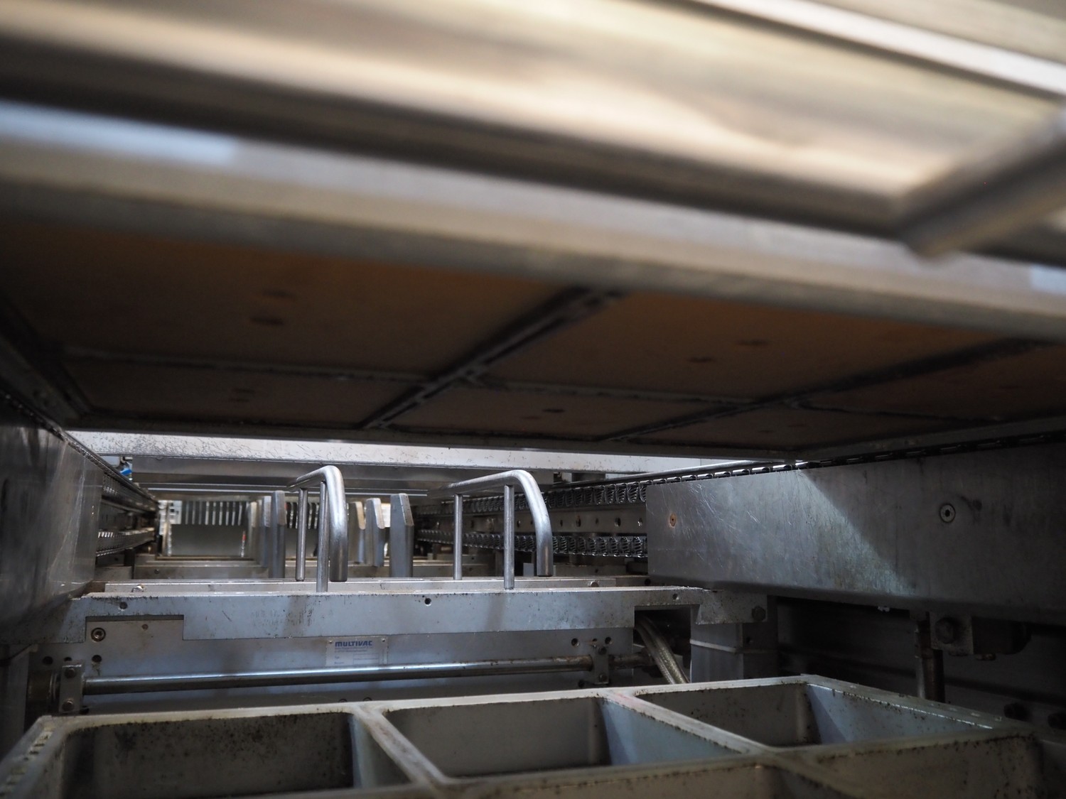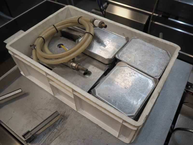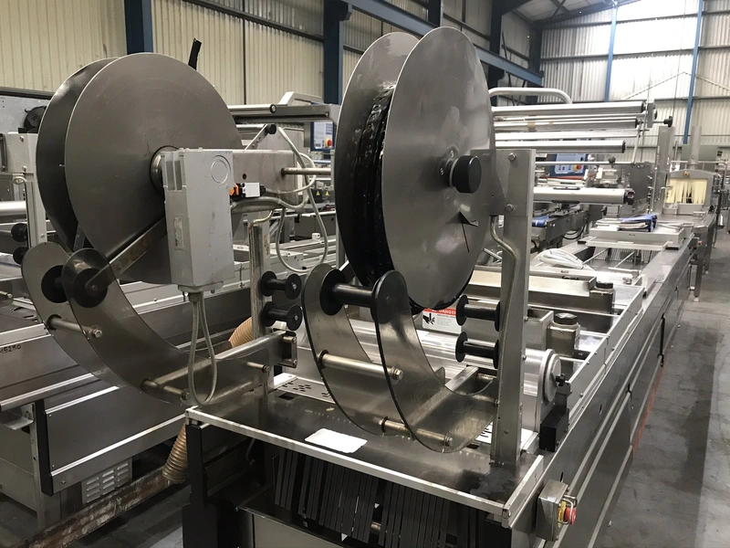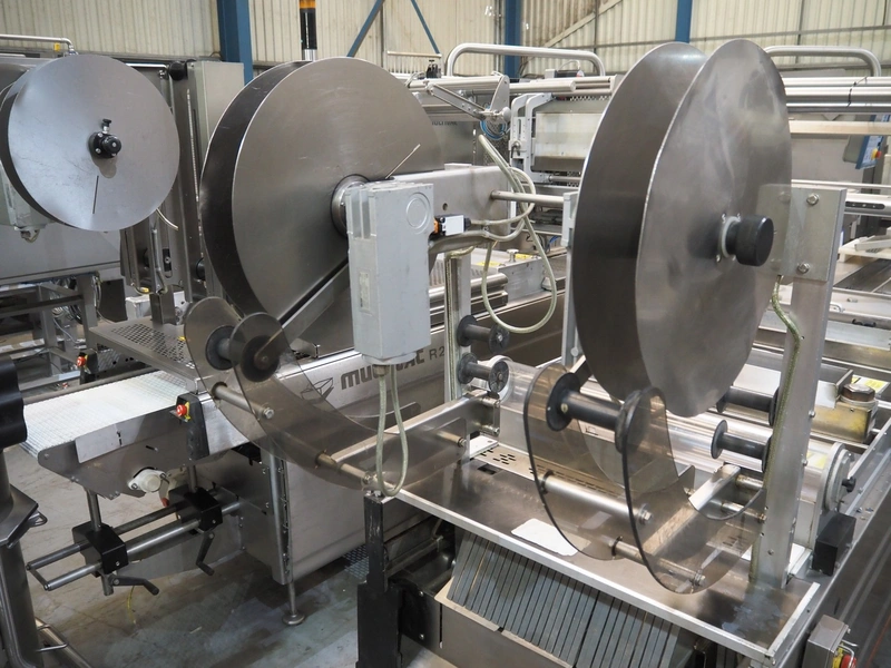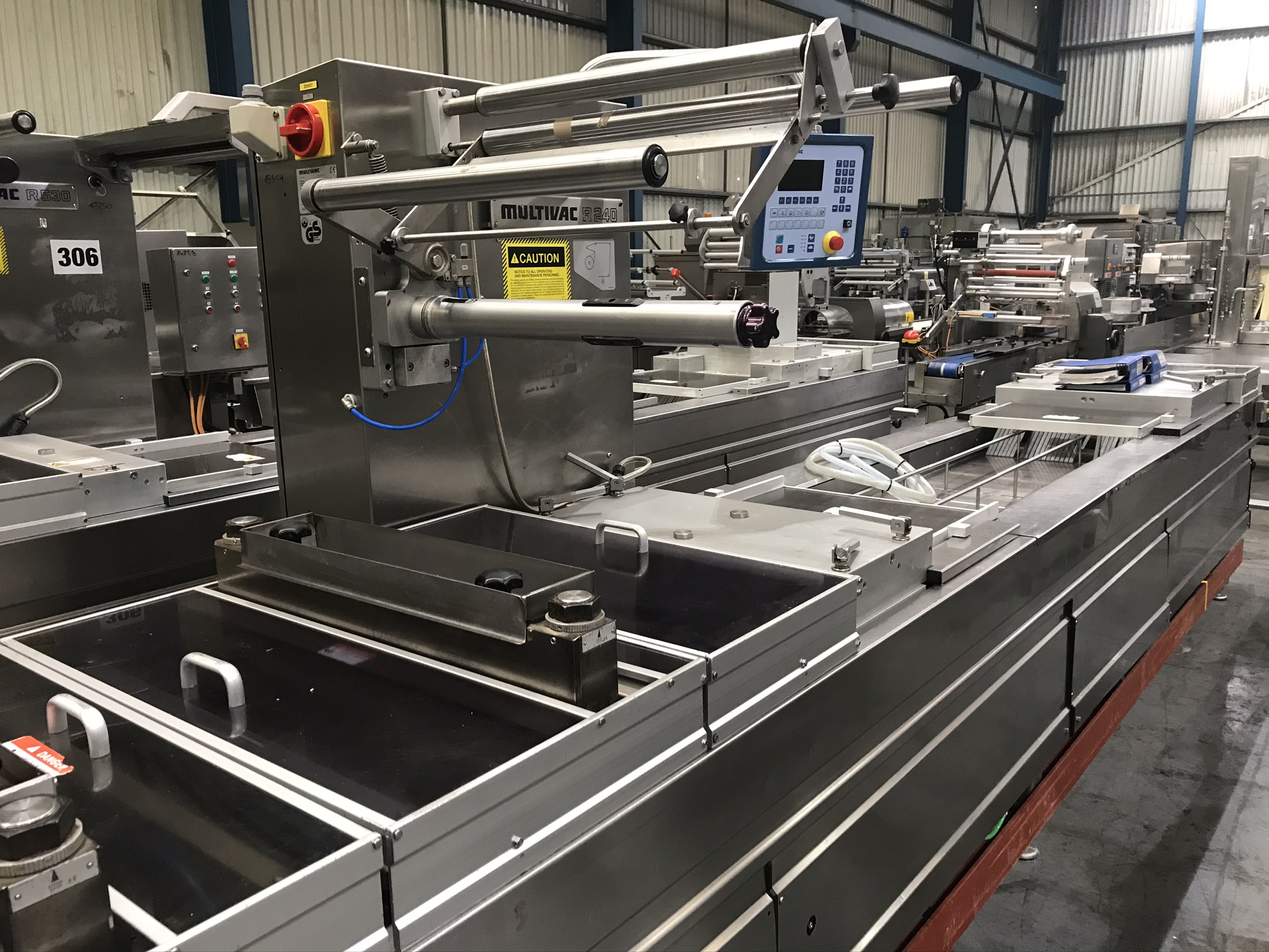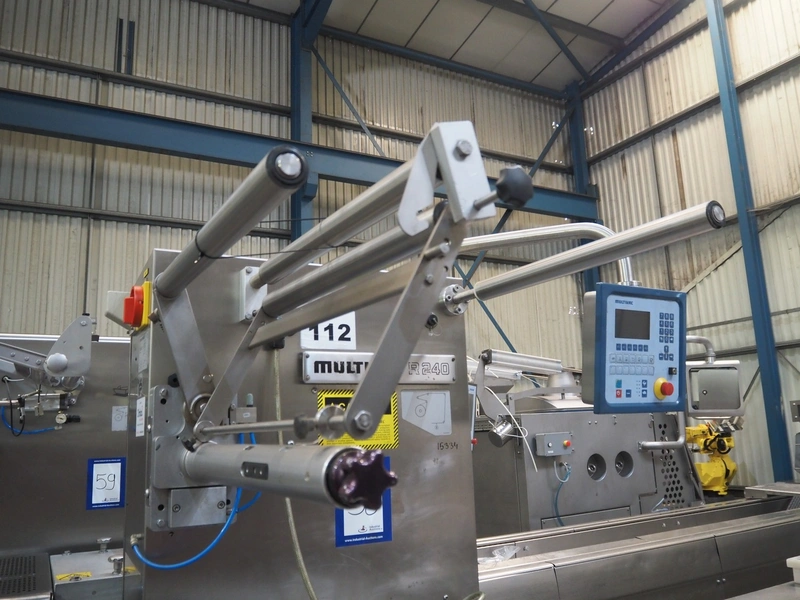 Multivac thermoformer, type: R240, serial number: 100578, year of construction: 2005, 415 V, 3 Ph, 50 Hz, 43 A, 15.5 kW, index: 410 mm, dye: (6x) 190 mm x 160 mm, total dimensions: 6400 mm x 1200 mm x 2100 mm.