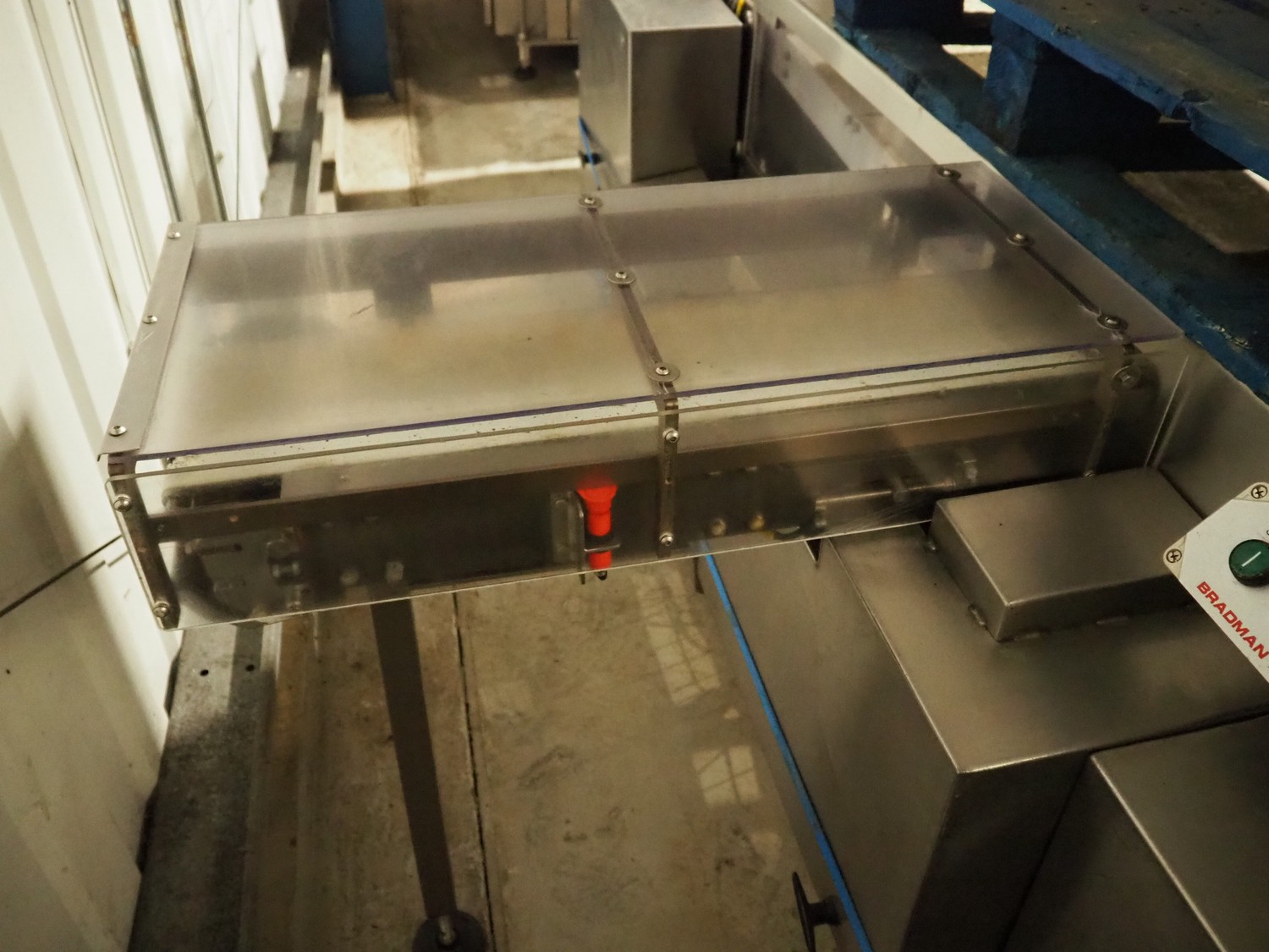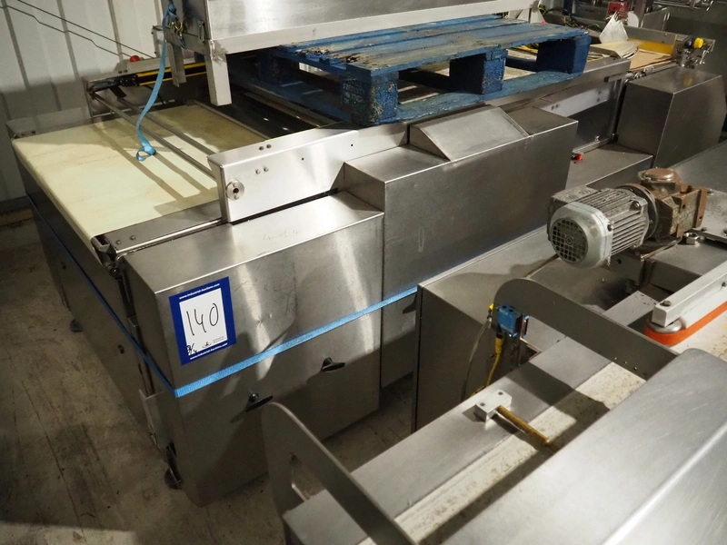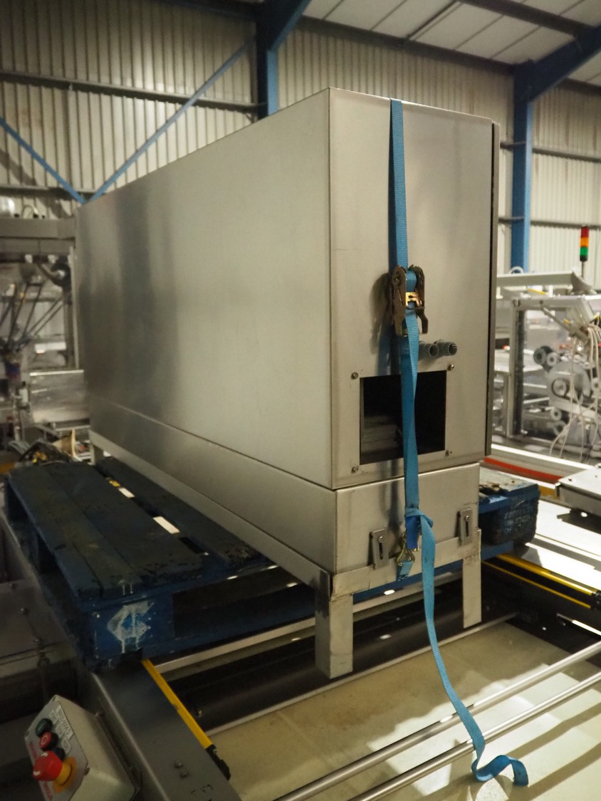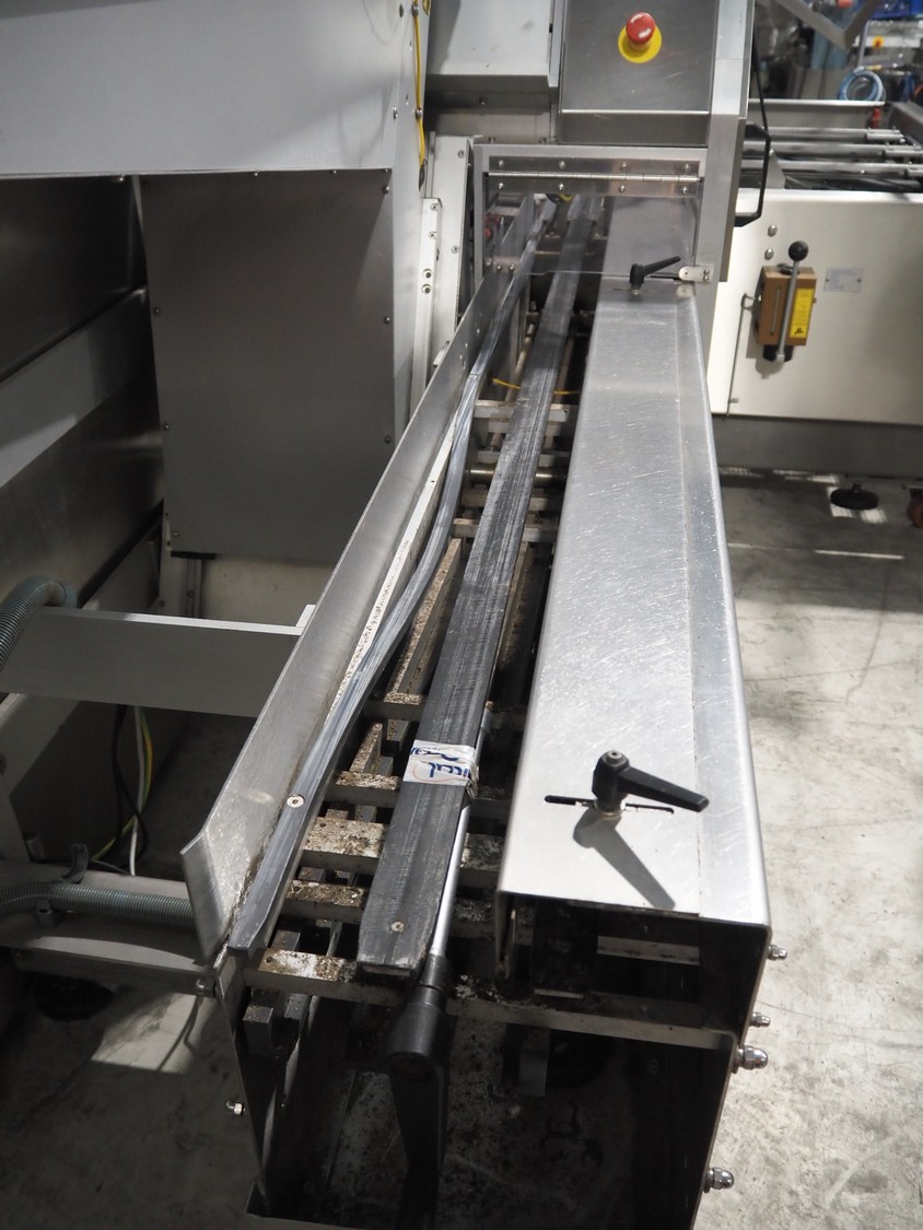 Bradman Lake mobile cartoner, type: SL903 0/H, serial number: 67930810, year of construction: 2010, 400 V, 3 Ph, 50 Hz, 25 A, 14 kW, infeed belt width: 175 mm, clearance: 180 mm x 80 mm, carton clearance: 190 mm x 210 mm, total dimensions: 5650 mm x 2100 mm x 2050 mm. 2 Transport belts, plastic belt, belt width: 150 mm and 900 mm, total dimensions: 2500 mm x 800 mm x 1010 mm and 2900 mm x 2100 mm x 900 mm.