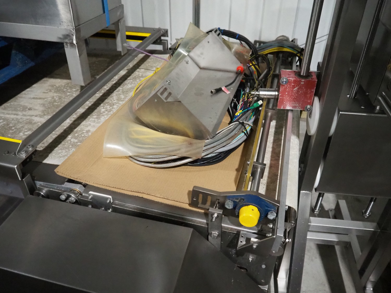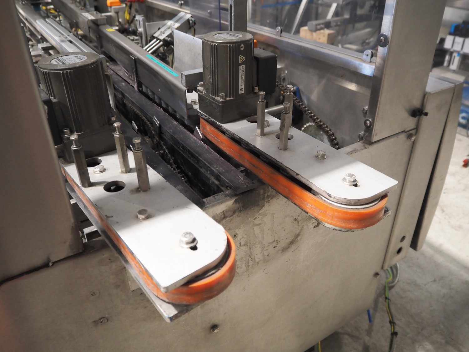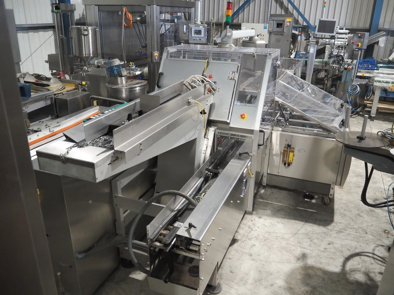 Bradman Lake mobile cartoner, type: SL903 0/H, serial number: 67930810, year of construction: 2010, 400 V, 3 Ph, 50 Hz, 25 A, 14 kW, infeed belt width: 175 mm, clearance: 180 mm x 80 mm, carton clearance: 190 mm x 210 mm, total dimensions: 5650 mm x 2100 mm x 2050 mm. 2 Transport belts, plastic belt, belt width: 150 mm and 900 mm, total dimensions: 2500 mm x 800 mm x 1010 mm and 2900 mm x 2100 mm x 900 mm.