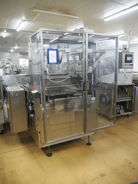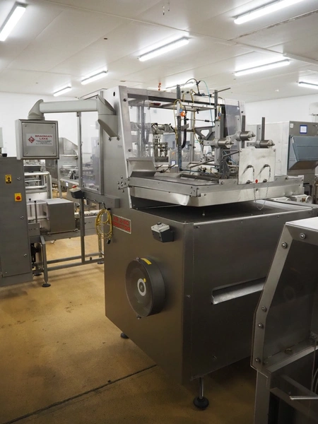 Bradman Lake tray erector, machine type: XS 2/60, serial number: 6350-03-04, 400 V, 3 Ph, 50 Hz, 20 A, total dimensions: 1600 mm x 1800 mm x 2040 mm.