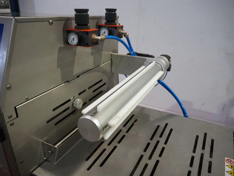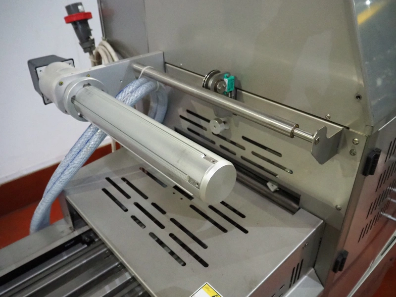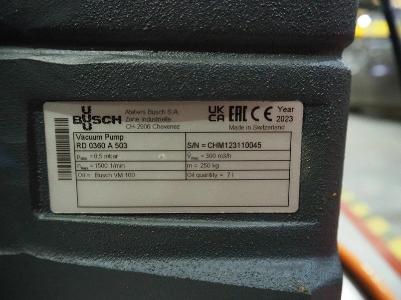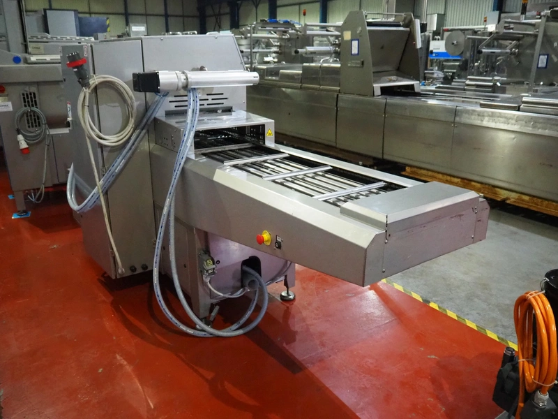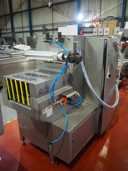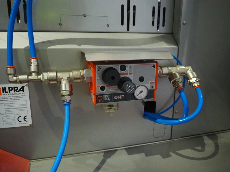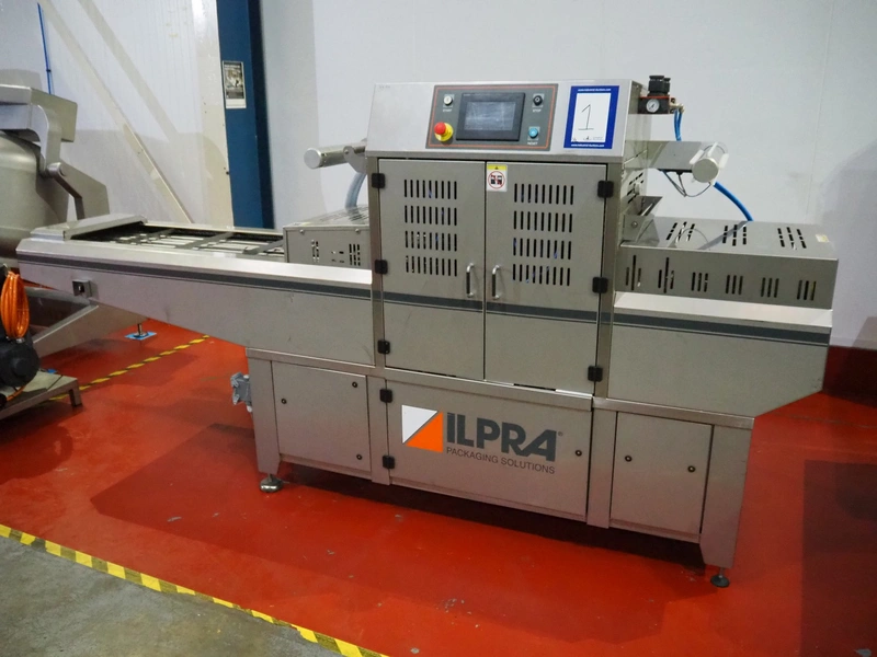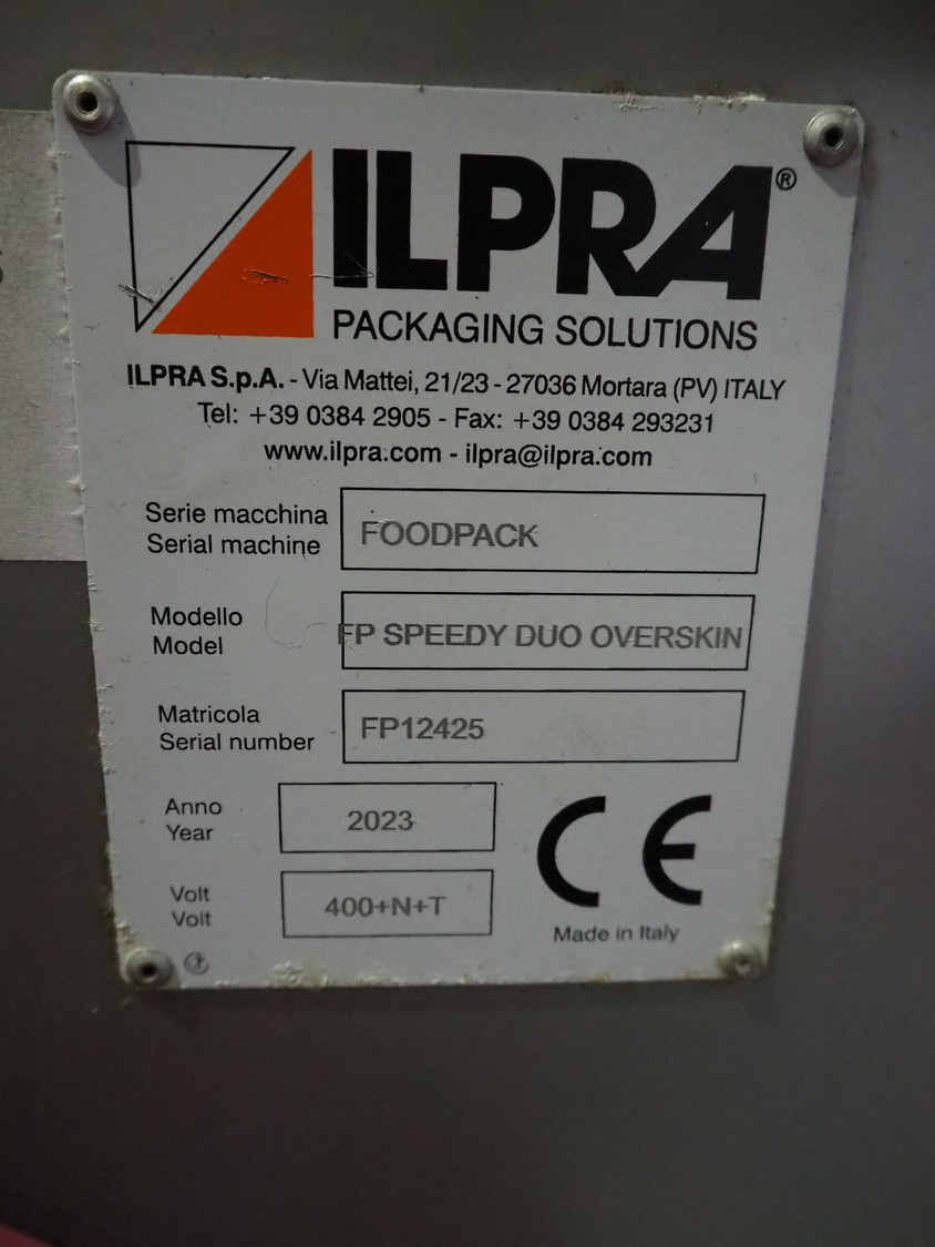 Ilpra S.p.A. traysealer, model: FP SPEEDY DUO OVERSKIN, serial number: FP12425, year of construction: 2023, 400 V, distance between dividers: 340 mm, dimensions dye: (4x) 190 mm x 150 mm, total dimensions: 3230 mm x 1050 mm x 1620 mm. With extra dye set, dimensions: (4x) 210 mm x 170 mm. Including Busch vacuum pump, model: RD 0360 A 503, serial number: CHM123110045, capacity: 300 m³/h, weight: 250 kg, dimensions: 1000 mm x 850 mm x 800 mm.