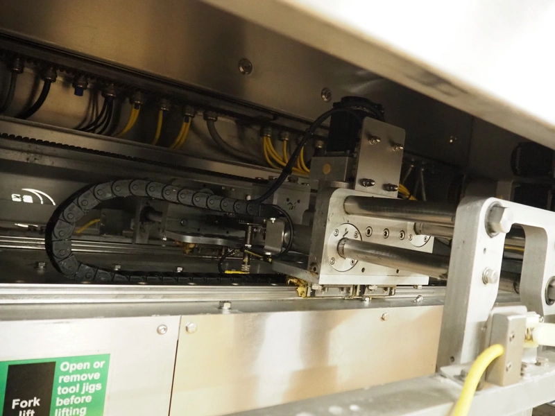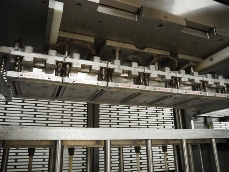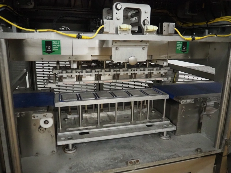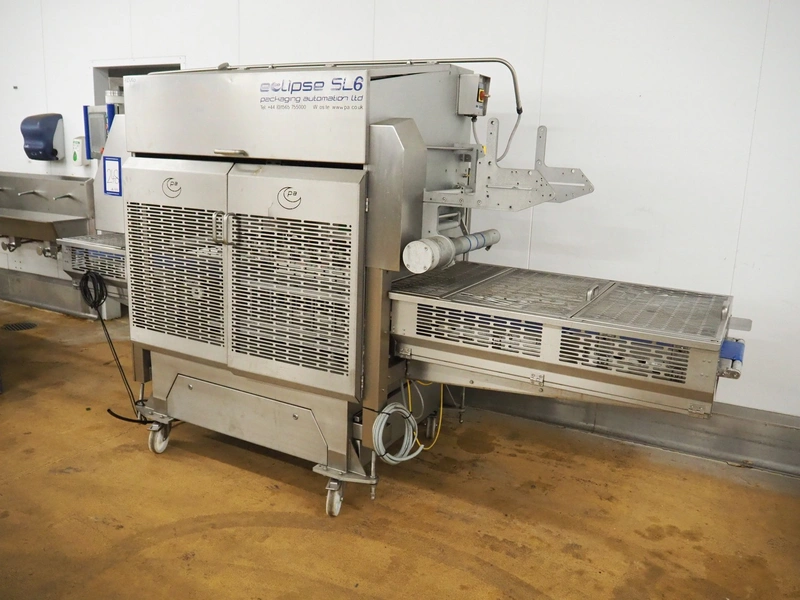 Packaging Automation Ltd mobile traysealer, model: Eclipse SL6, serial number: EC6-MC-00018, 415 V, 50 Hz, plastic belt, belt width: 345 mm, 6 dye, dye dimensions: 164 mm x 120 mm, total dimensions: 3800 mm x 1200 mm x 2100 mm.