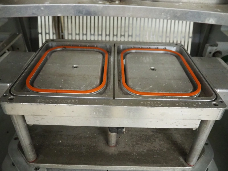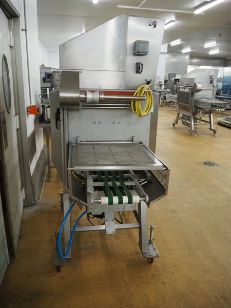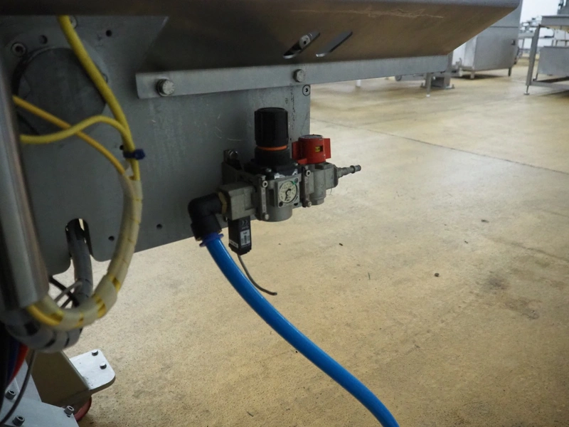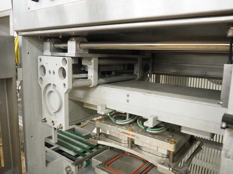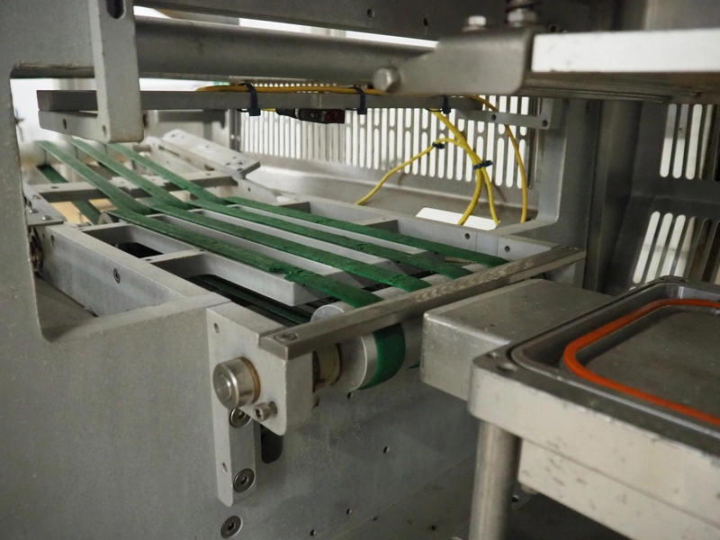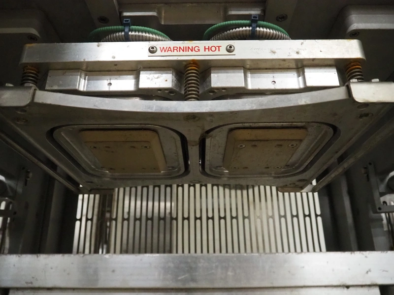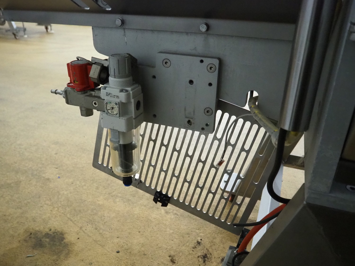 Proseal mobile traysealer, model: FastPack 40, serial number: 1348, 240 V, 50 Hz, plastic wire belt, belt width: 180 mm, 2 dyes, dye dimensions: 185 mm x 140 mm, total dimensions: 2200 mm x 900 mm x 2000 mm.