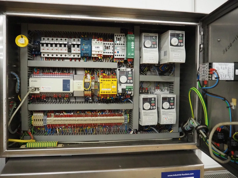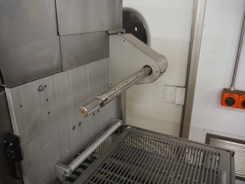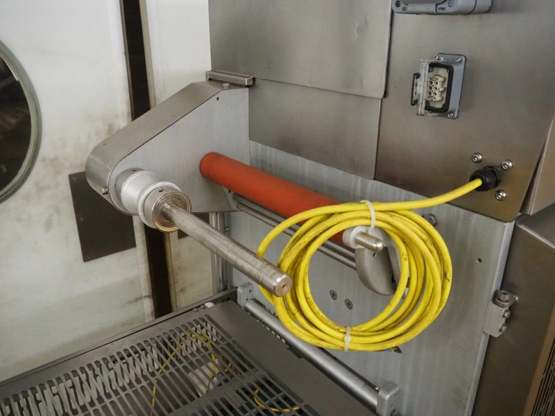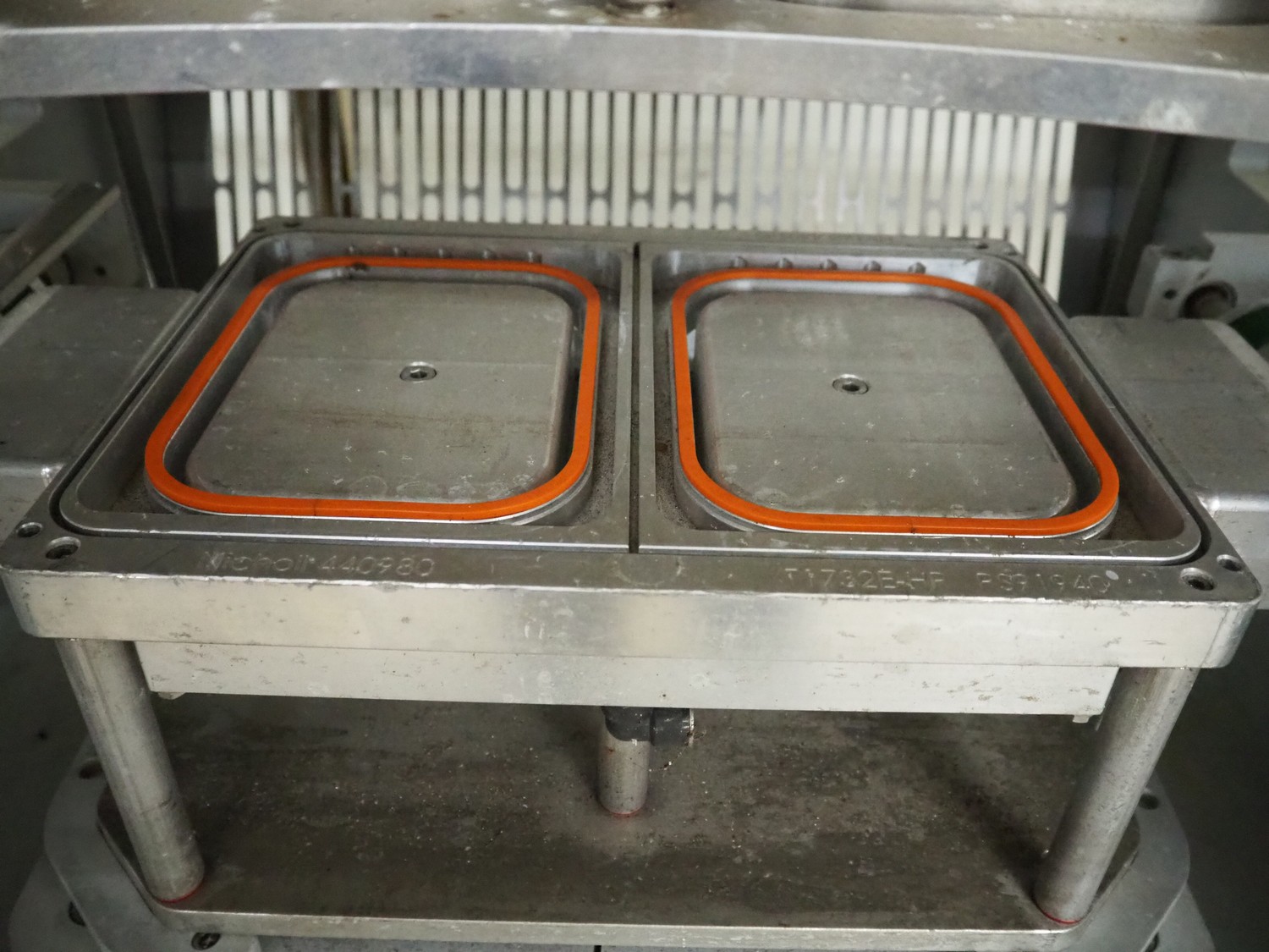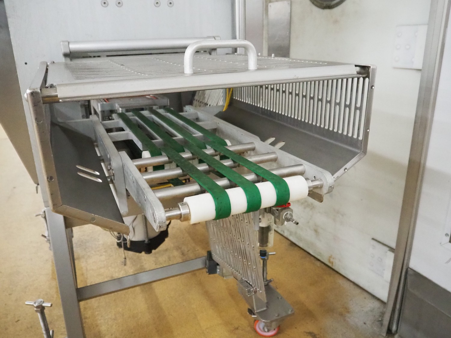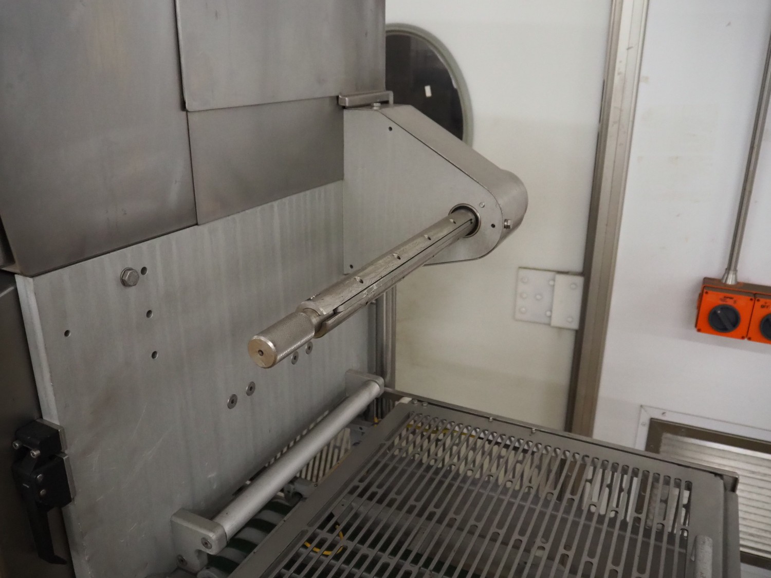 Proseal mobile traysealer, model: FastPack 40, serial number: 1348, 240 V, 50 Hz, plastic wire belt, belt width: 180 mm, 2 dyes, dye dimensions: 185 mm x 140 mm, total dimensions: 2200 mm x 900 mm x 2000 mm.