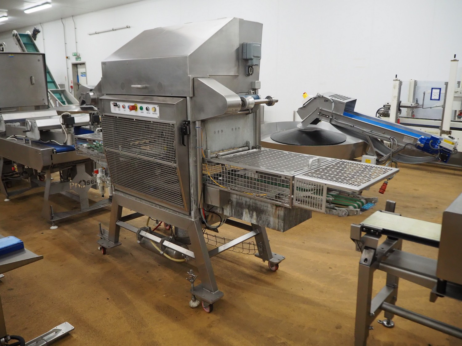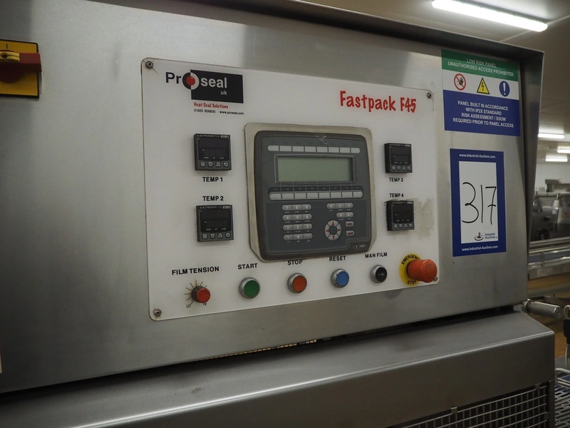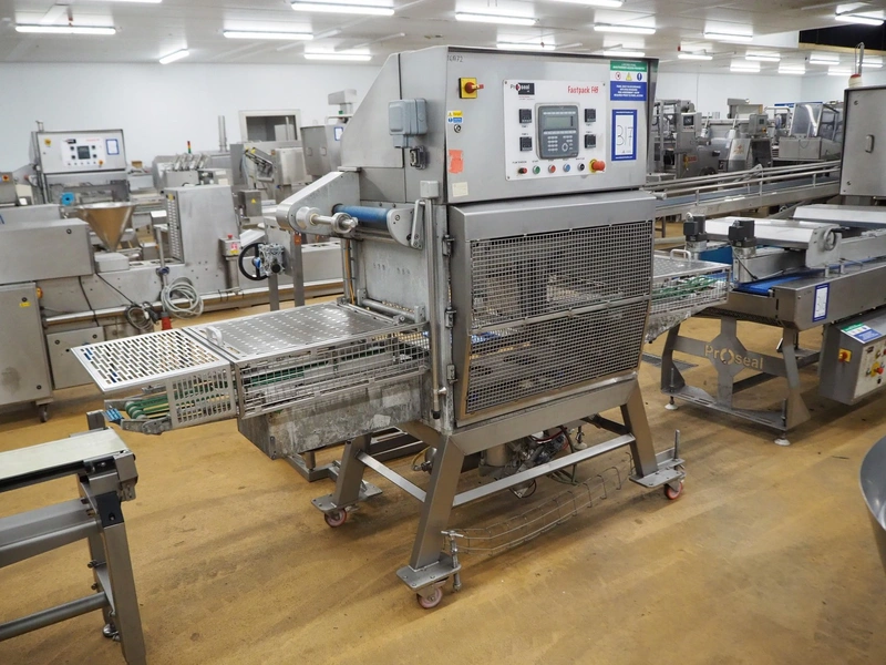 Proseal mobile traysealer, type: Fastpack F45, serial number: 1361, 415 V, 50 Hz, plastic wire belt, belt width: 200 mm, total dimensions: 3000 mm x 900 mm x 1920 mm. Without dye set.