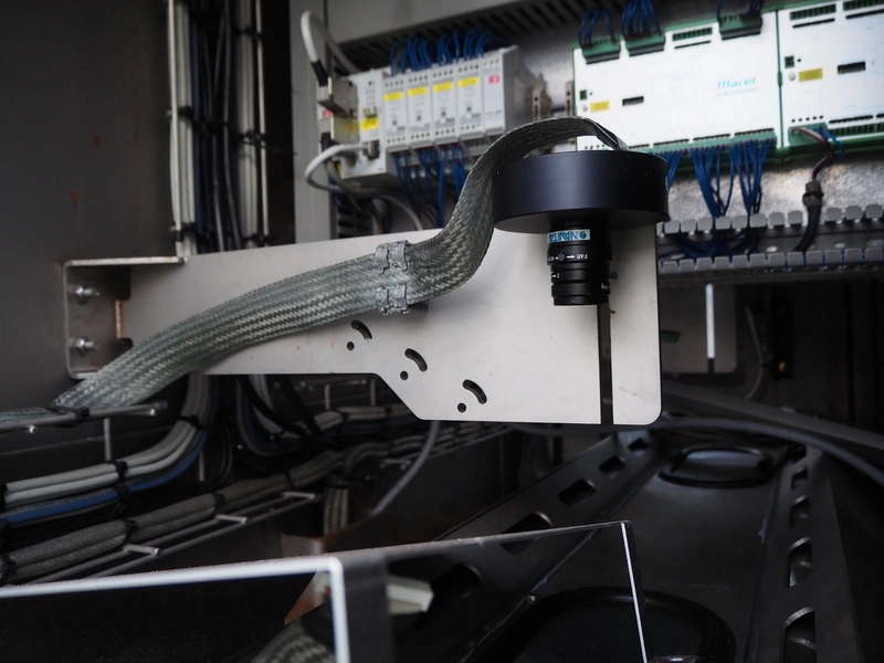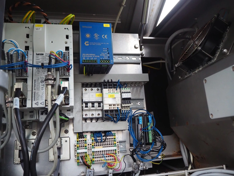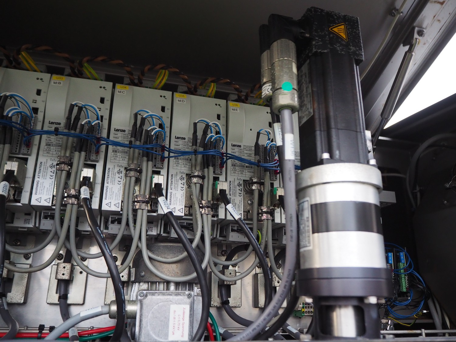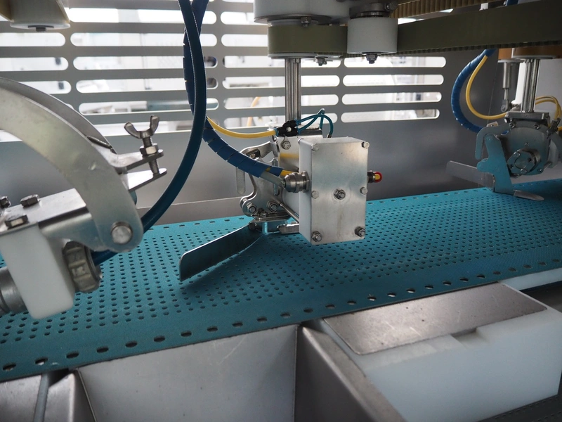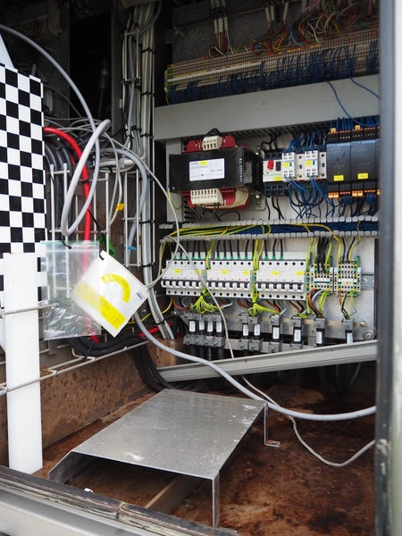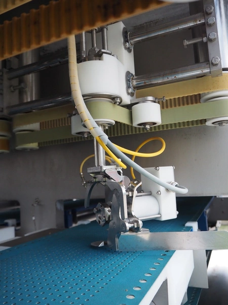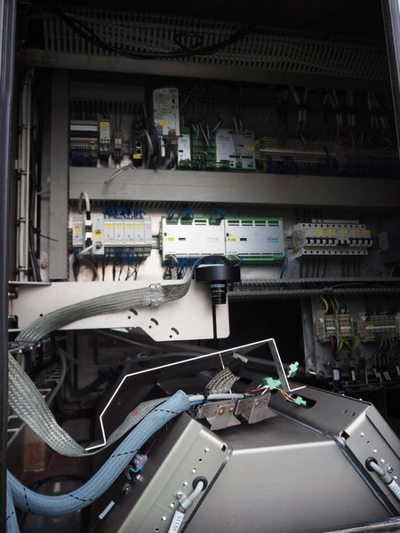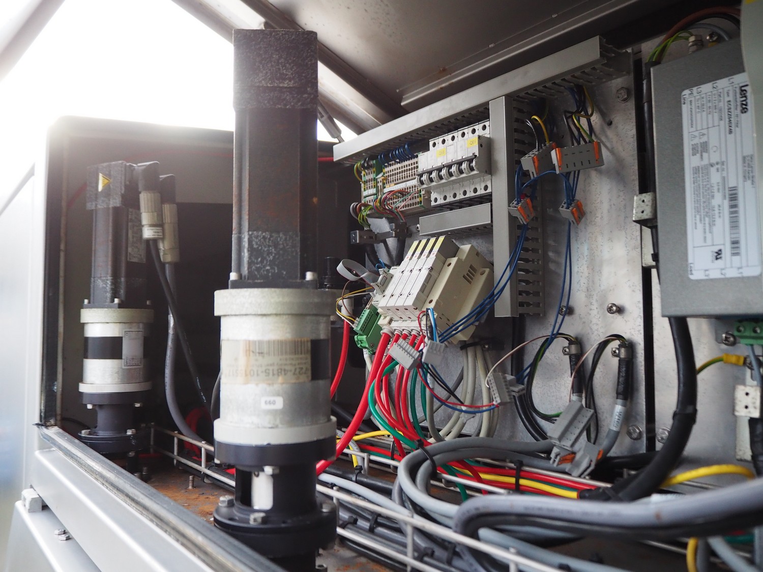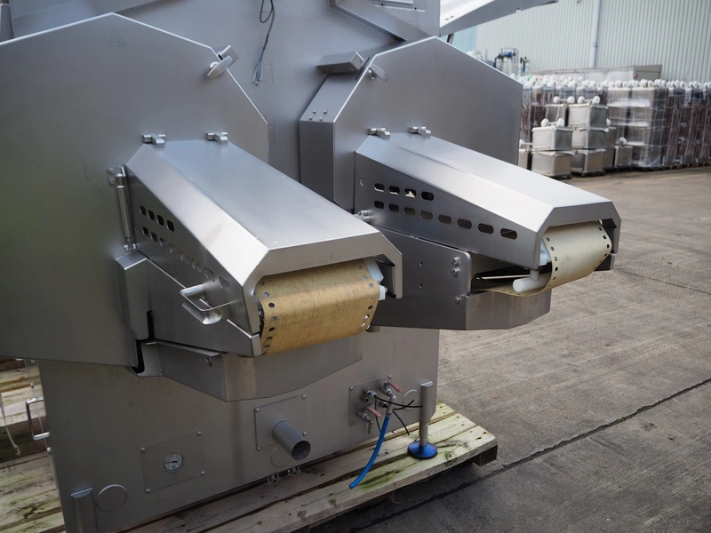 Marel trimming robot, machine: ITM2, model: itm-p001-x350B5, type: 0033-001, serial number: A100681, year of construction: 2013, 380-400 V, 3 Ph, 50-60 Hz, 32 A, 37 kW, weight: 3500 kg, plastic perforated belt, belt width: (2x) 340 mm, total dimensions: 4500 mm x 2100 mm x 2530 mm. Incomplete.