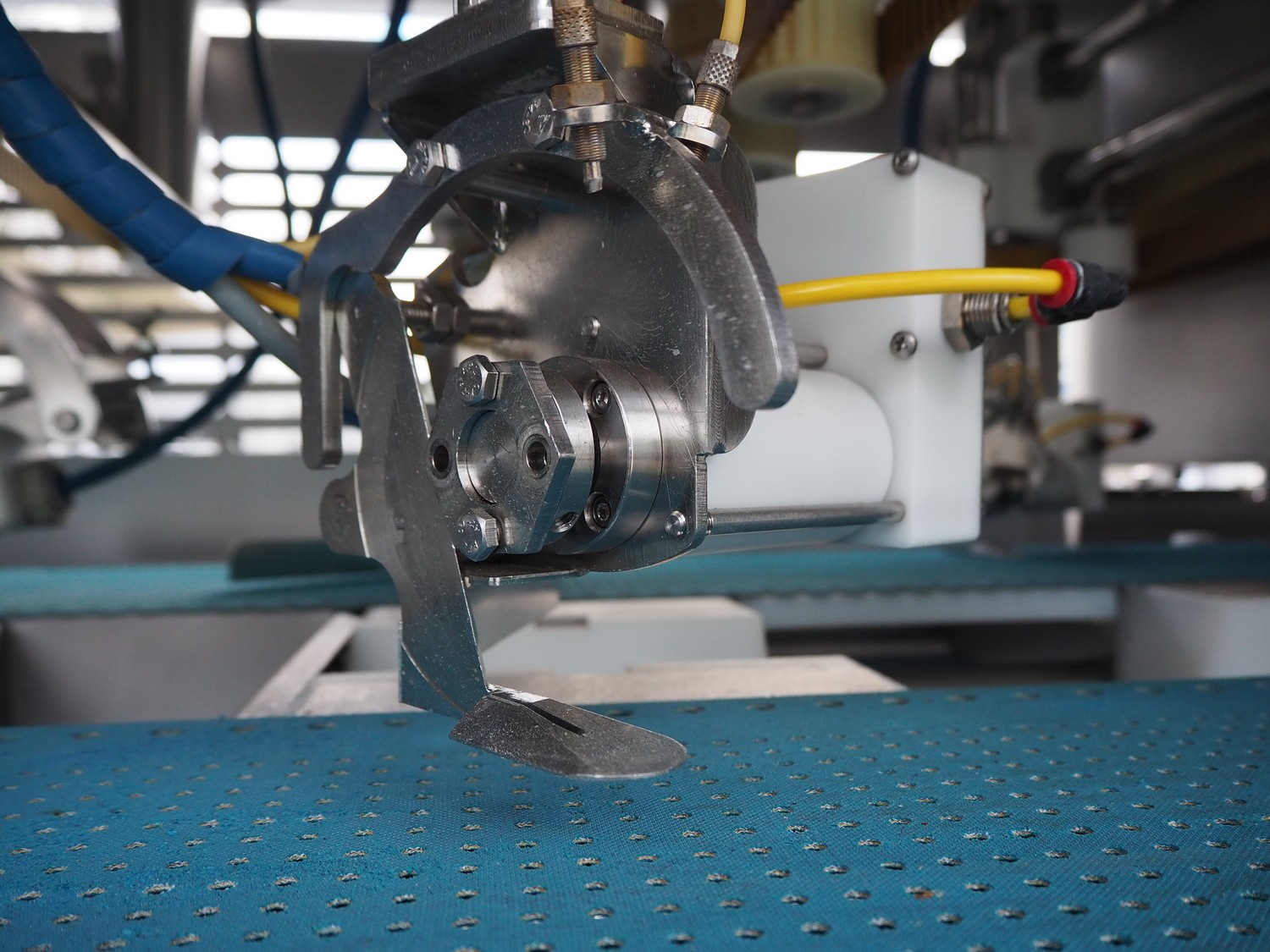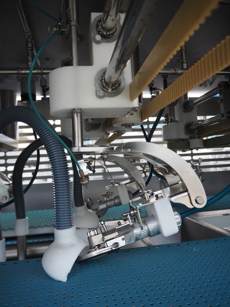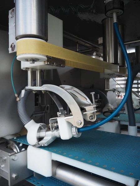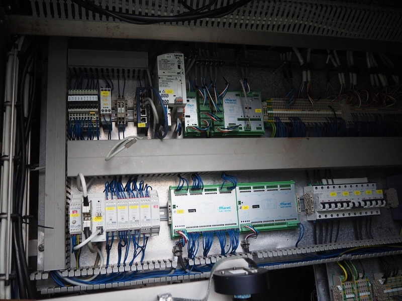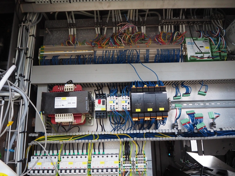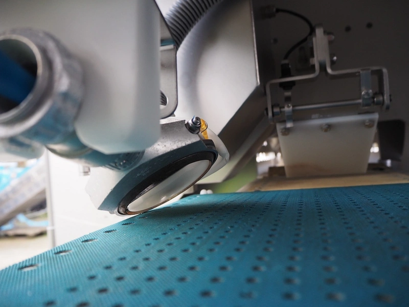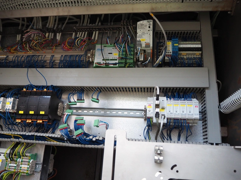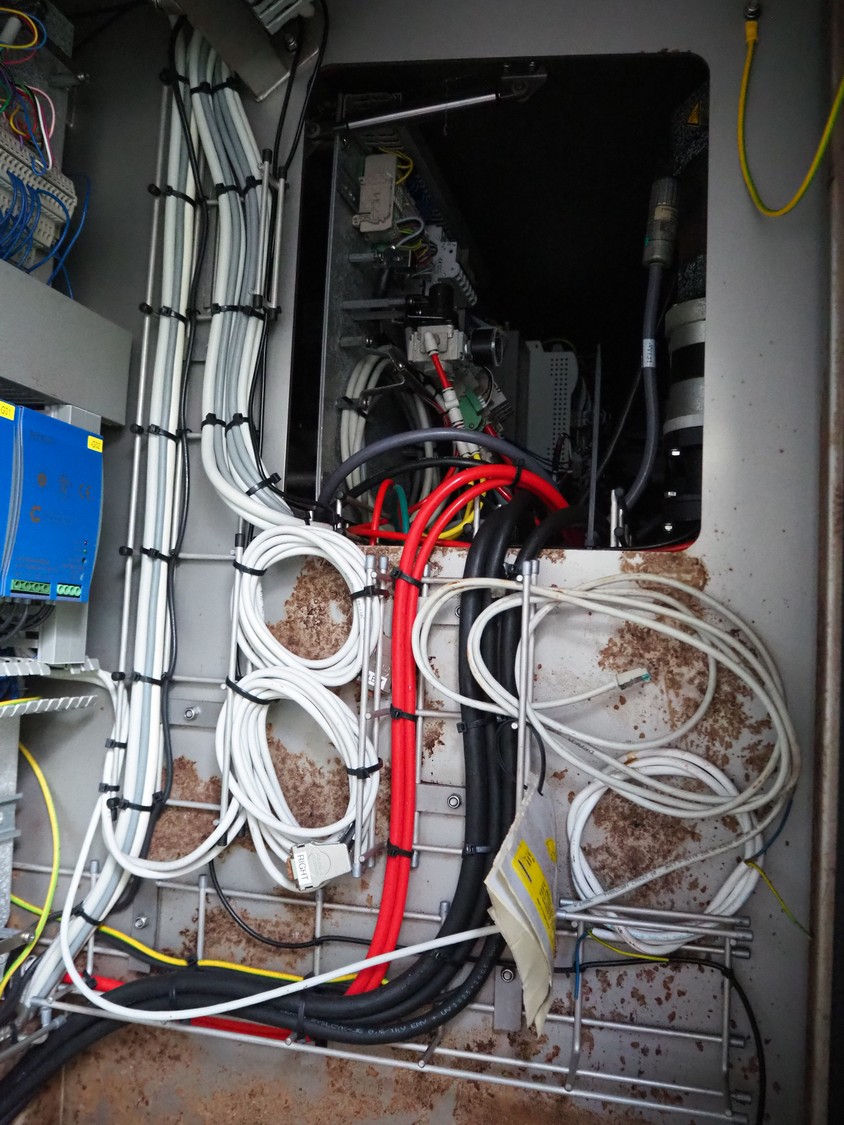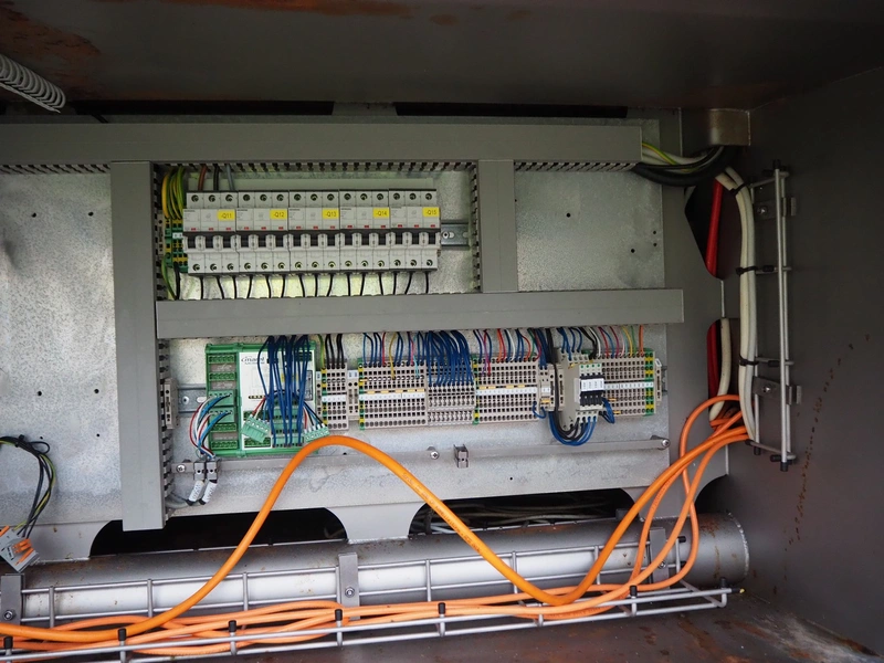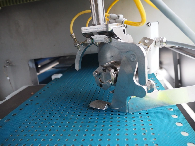 Marel trimming robot, machine: ITM2, model: itm-p001-x350B5, type: 0033-001, serial number: A100681, year of construction: 2013, 380-400 V, 3 Ph, 50-60 Hz, 32 A, 37 kW, weight: 3500 kg, plastic perforated belt, belt width: (2x) 340 mm, total dimensions: 4500 mm x 2100 mm x 2530 mm. Incomplete.