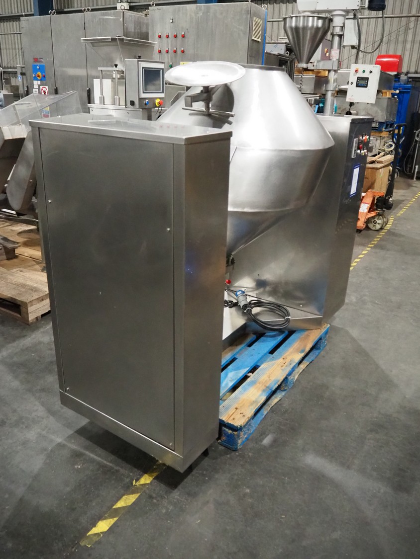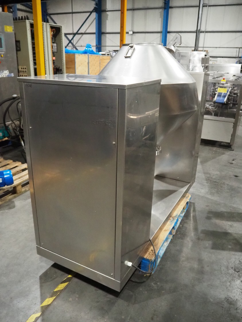 S/s tumbler, dimensions drum: Ø 800 mm x 1000 mm, total dimensions: 2000 mm x 700 mm x 1800 mm.