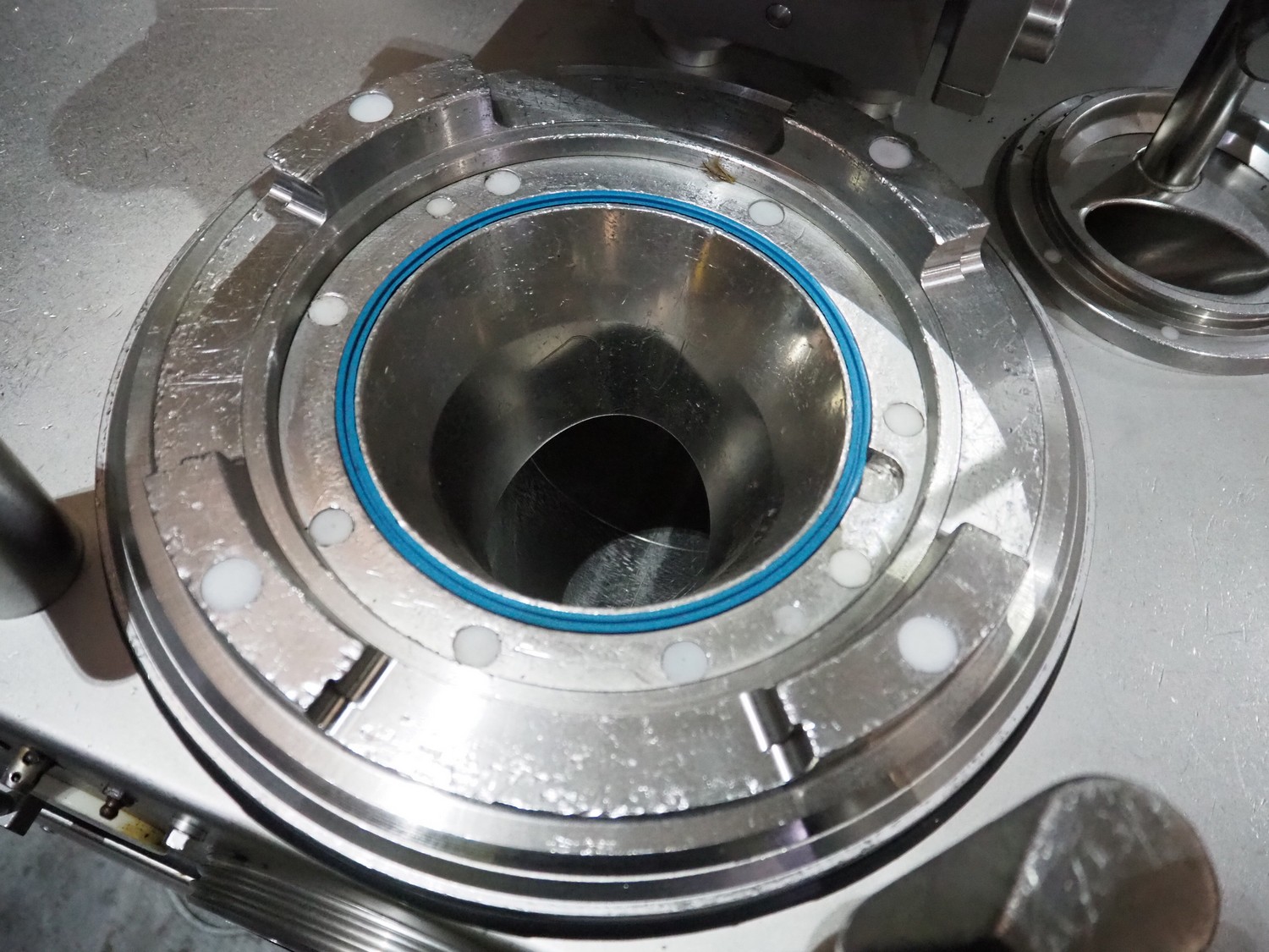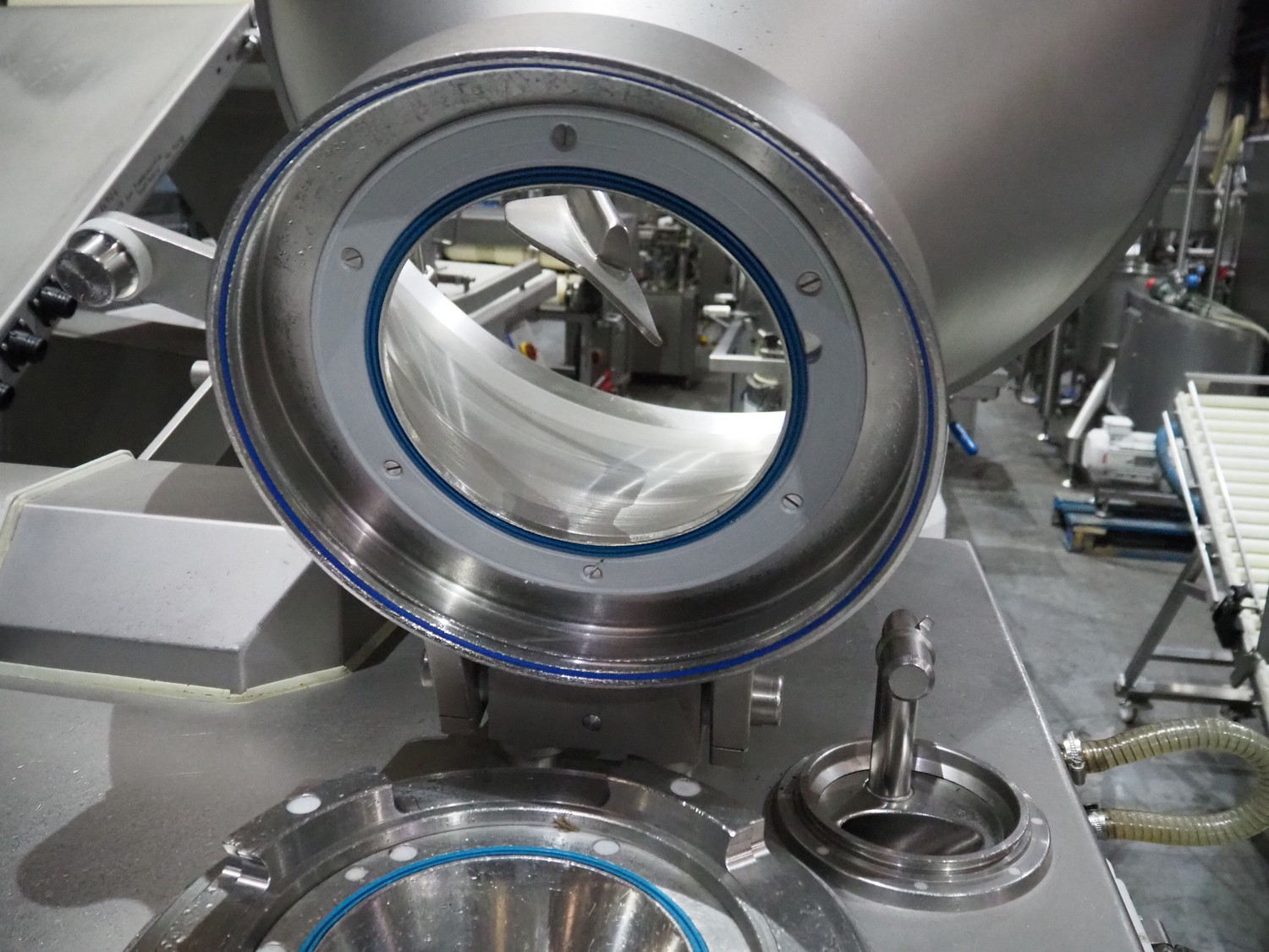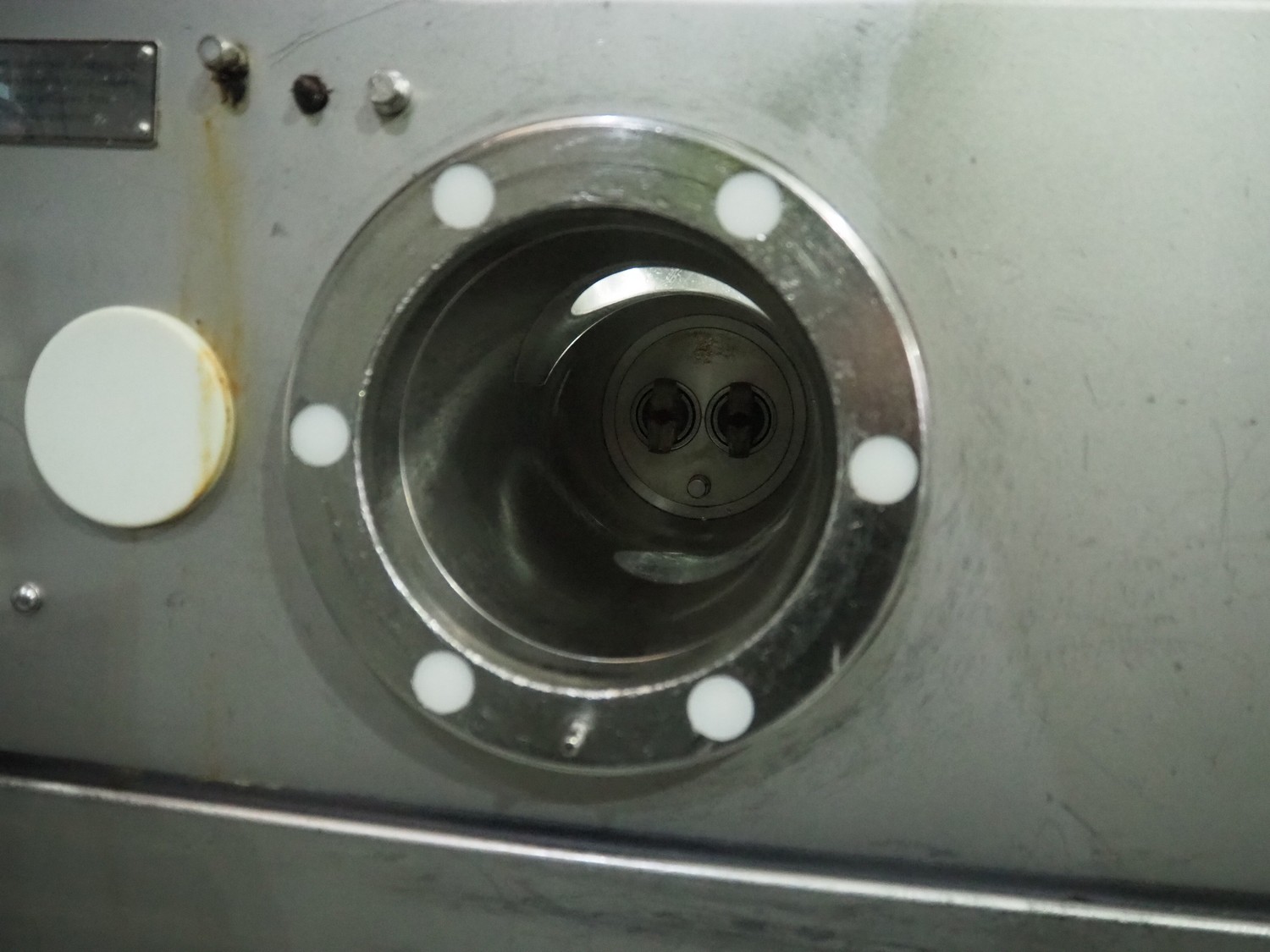 Vemag vacuum filling machine with lifter for 200 liter meat bins, model: HP 10 C, number: 142 1500, year of construction: 2005, 400-460 V, 3 Ph, 50/60 Hz, 29 A, 20 kW, dimensions: 2000 mm x 1300 mm x 2150 mm.