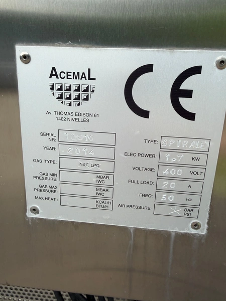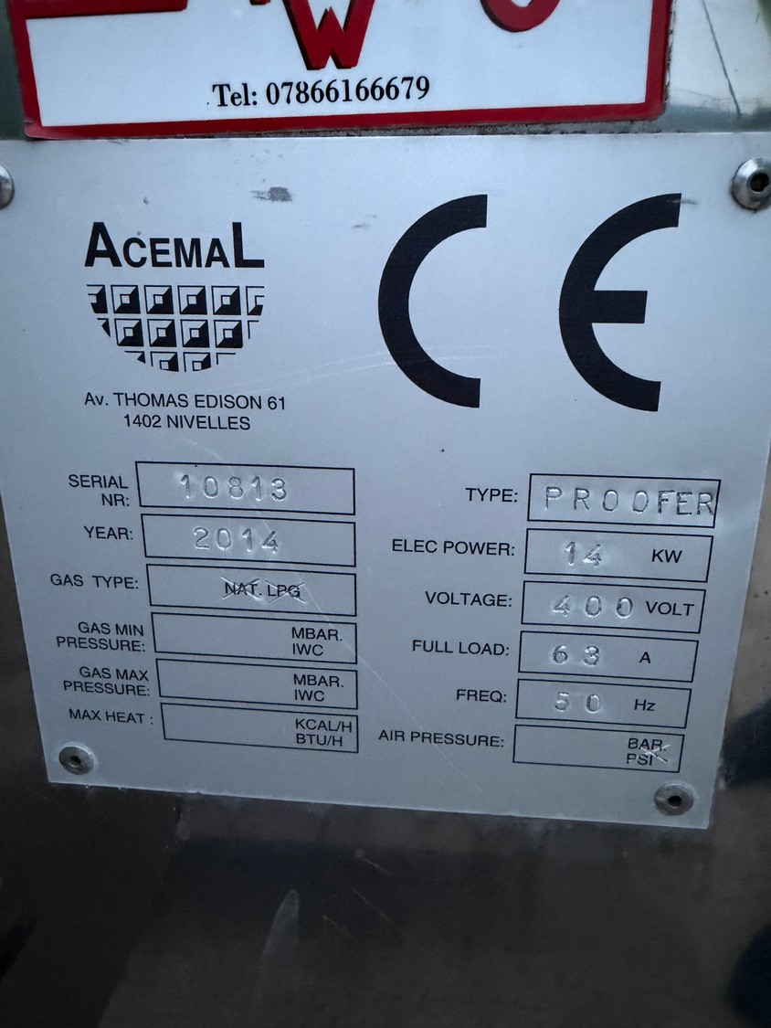- Acemal proofer, serial number: 10813, year of construction: 2014, 400 V, 50 Hz, 63 A, 14 kW.