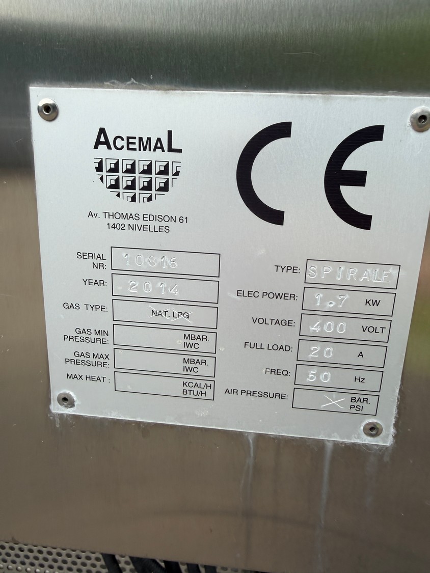 - Acemal spirale, serial number: 10816, year of construction: 2014, 400 V, 50 Hz, 20 A, 1.7 kW, s/s mesh belt.