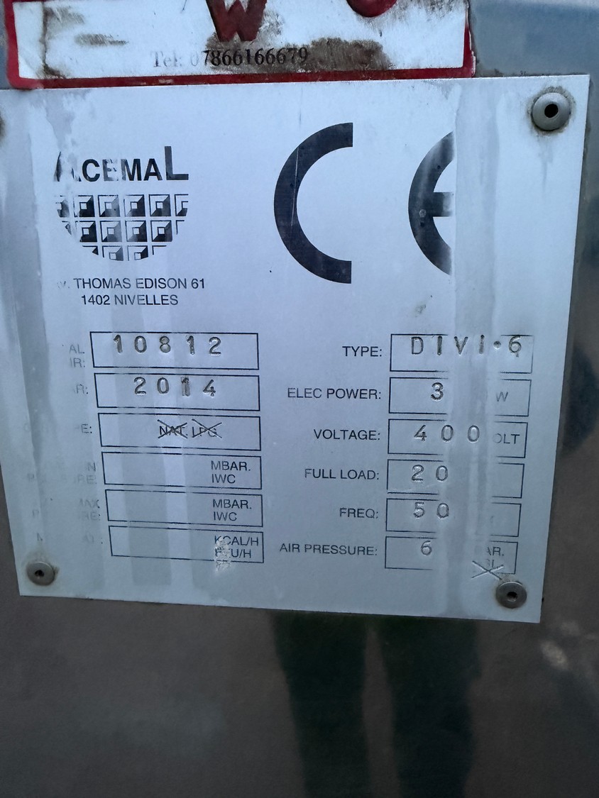 - Acemal waffle maker, type: DIVI.6, serial number: 10812, year of construction: 2014, 400 V, 50 Hz, 20 A, 3 kW.