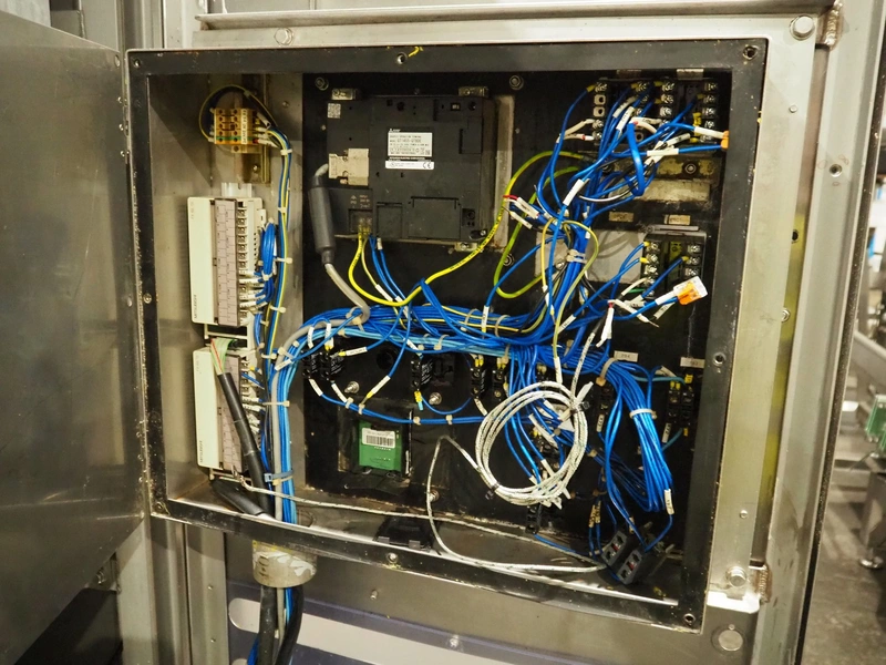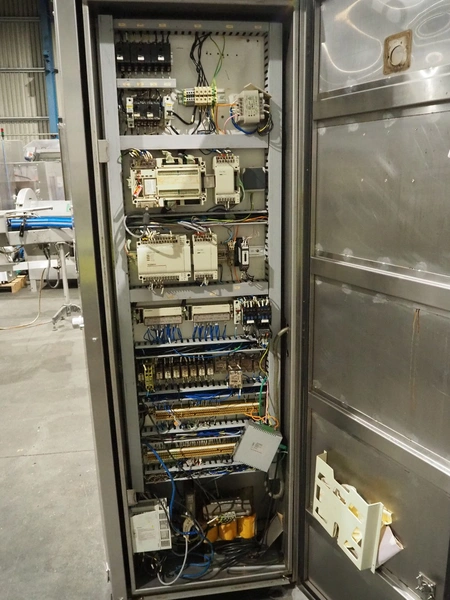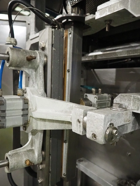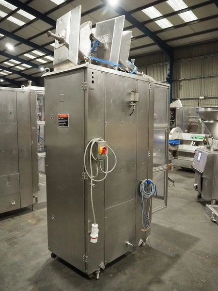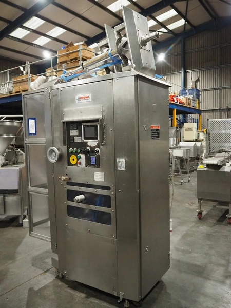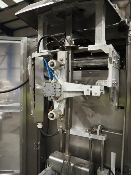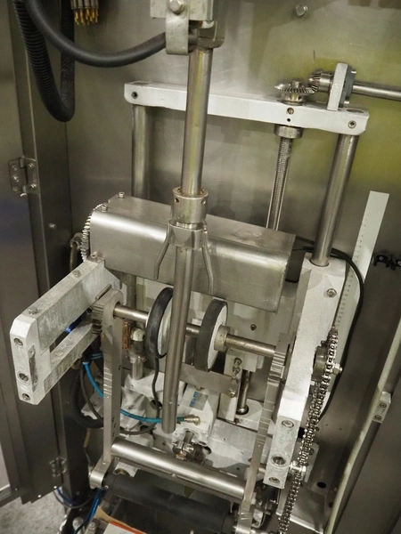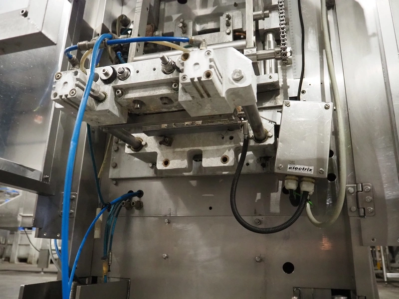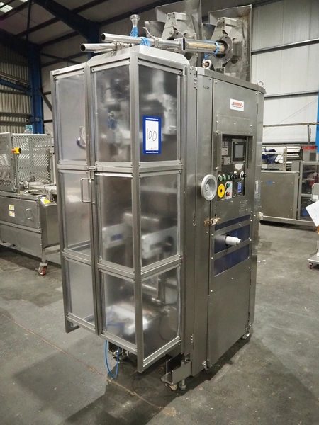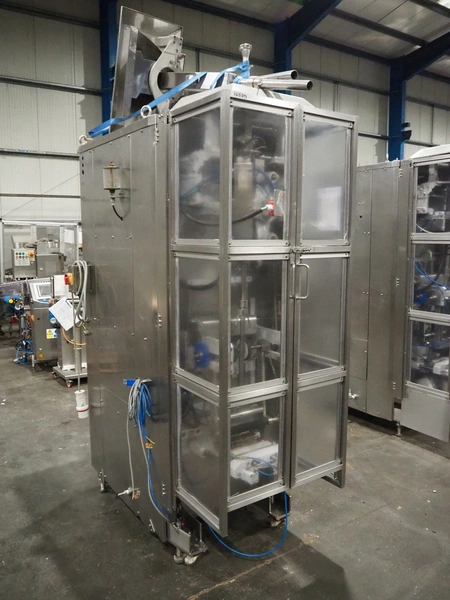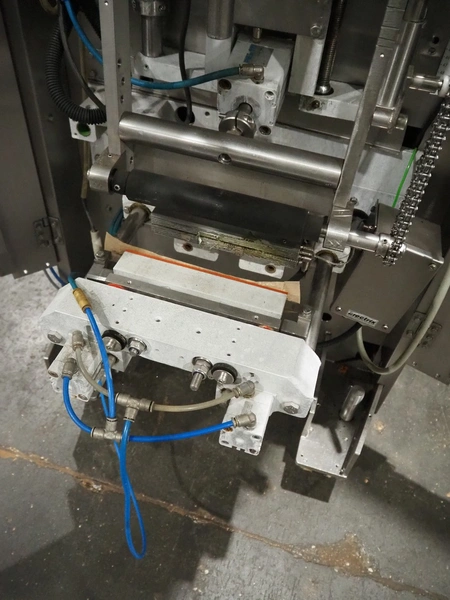 Cryovac vertical bag form-, fill-, and seal machine for liquids, vertical seal length: 445 mm, horizontal seal length: 220 mm, with Zodiac HS inkjet printer, total dimensions: 1600 mm x 950 mm x 2750 mm. With extra pipes