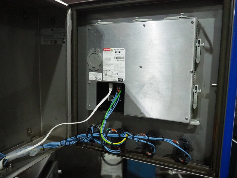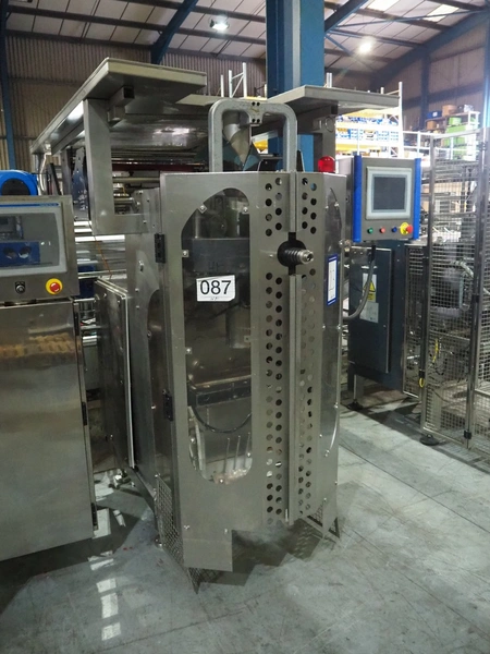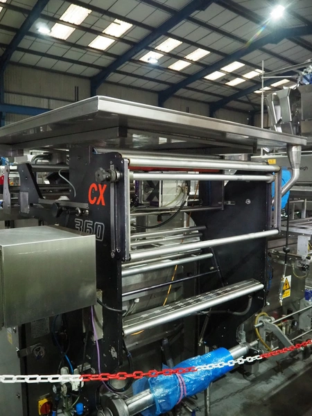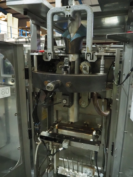 CFS Aquarius vertical bag form-, fill-, and seal machine, type: CX360, machine number: 6528, year of construction: 2001, 230/400 V, 3 Ph, 50 Hz, 5.5 kW, weight: 950 kg, pipe diameter: 105 mm, vertical seal length: 320 mm, horizontal seal length: 375 mm, with Markem Imaje SmartDate, total dimensions: 2400 mm x 1850 mm x 2020 mm.