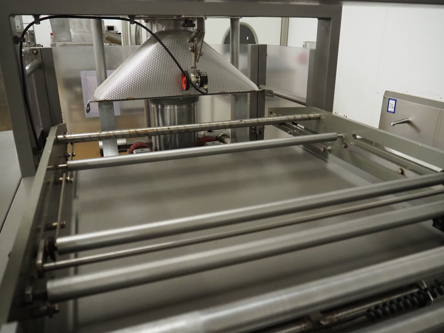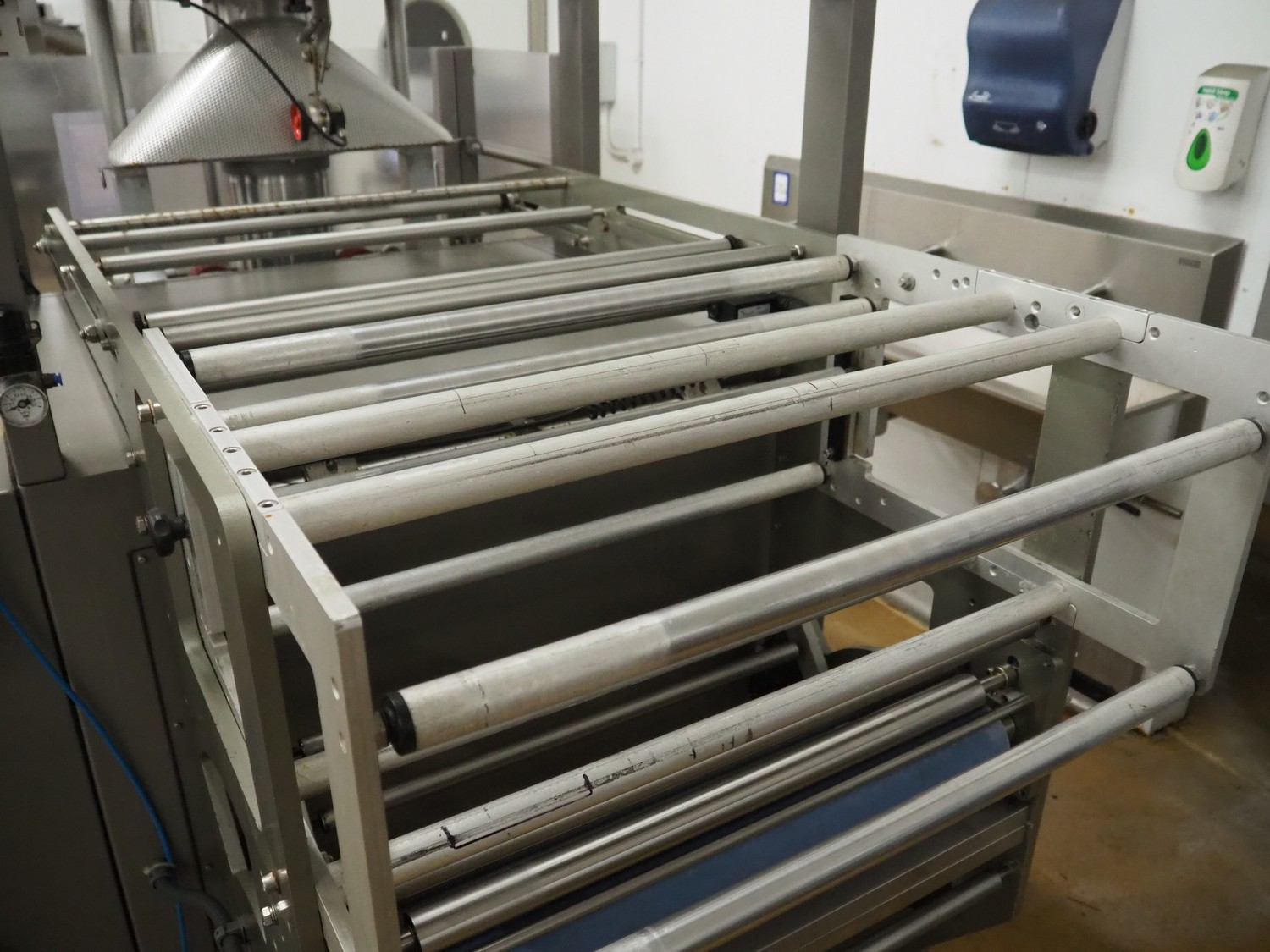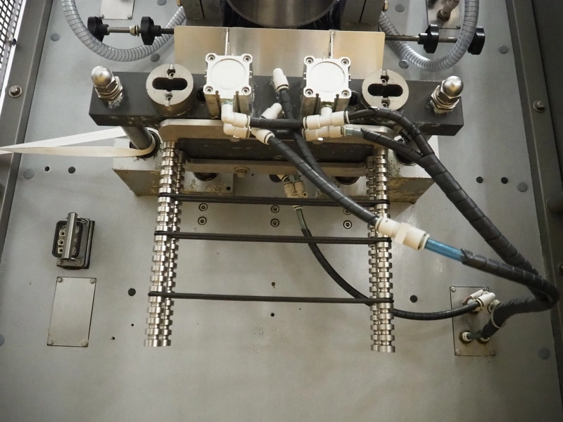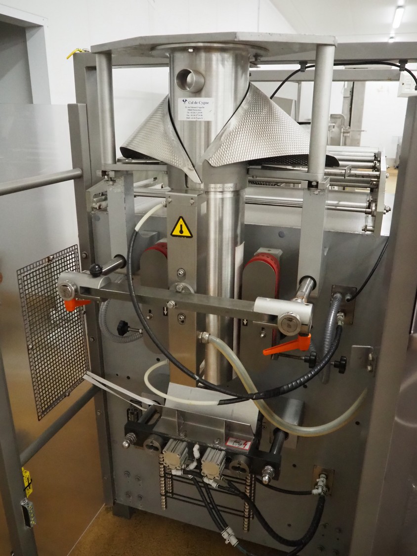 Ulma vertical bag form-, fill-, and seal machine, model: ETNA-280HT, serial number: 60281092, year of construction: 2005, 400 V, 50 Hz, 16 A, 6 kW, diameter pipe: 165 mm, vertical seal length: 400 mm, horizontal seal length: 300 mm, film width: 600 mm, total dimensions: 2220 mm x 1430 mm x 2120 mm.