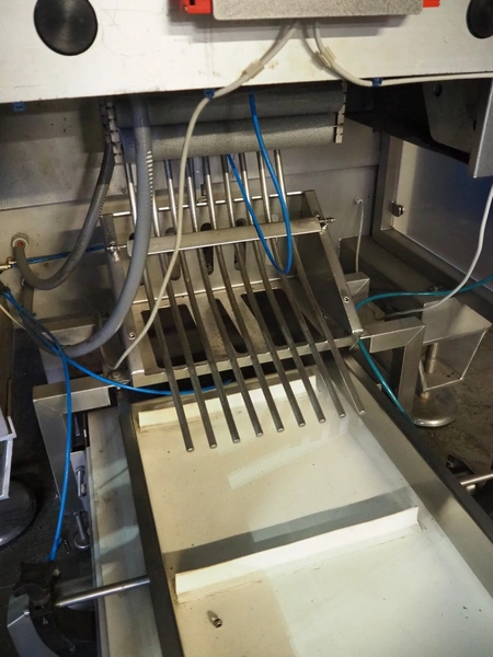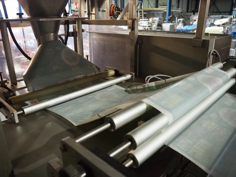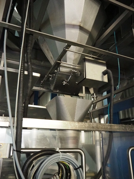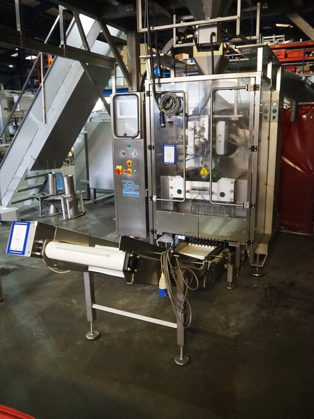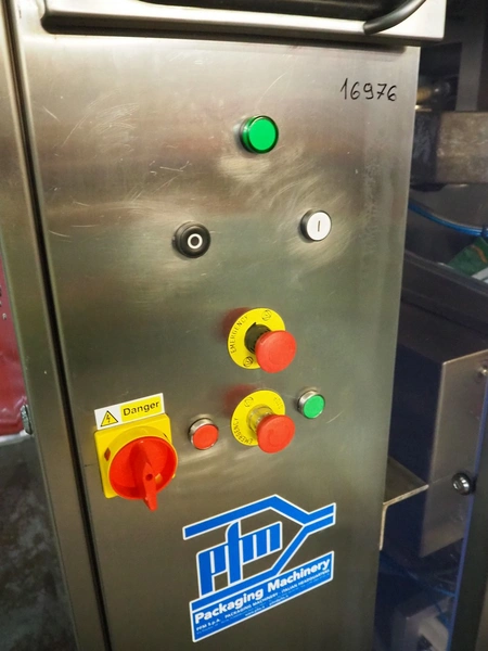 - PFM vertical bag form-, fill-, and seal machine, model: PV 320 LD INOX, serial number: D2855, year of construction: 2014, 400 V, 50 Hz, 22 A, 11 kW, weight: 1100 kg, pipe diameter: 130 mm, vertical seal length: 200 mm, horizontal seal length: 350 mm, total dimensions: 1800 mm x 2050 mm x 2200 mm.