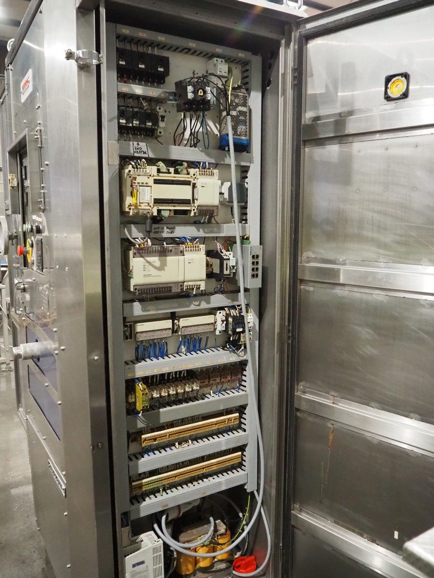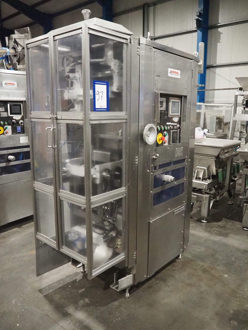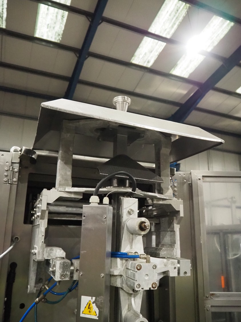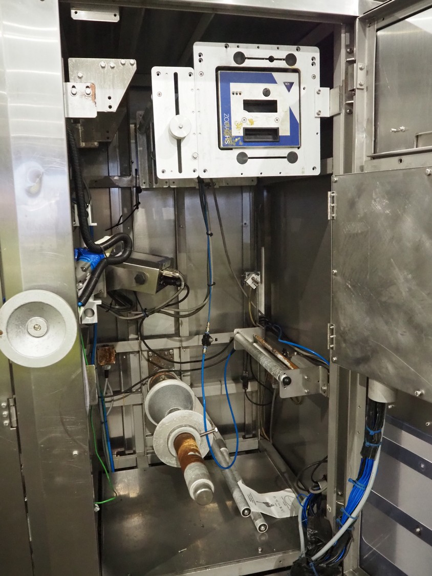 Cryovac vertical bag form-, fill-, and seal machine for liquids, model: onpack-2050, vertical seal length: 445 mm, horizontal seal length: 220 mm, with Zodiac HS, total dimensions: 1600 mm x 950 mm x 2750 mm.