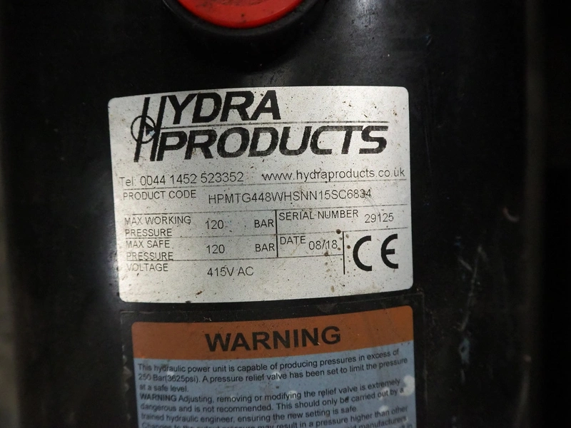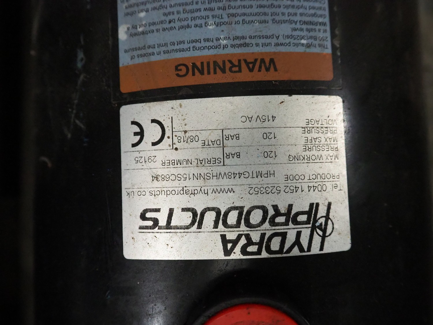 Hydro Products hydraulic power pack, model: HPMTG448WHSNN15SC6834, serial number: 21038, year of construction: 2/16, 415 V, max pressure: 70 bar, dimensions: 900 mm x 250 mm x 220 mm.