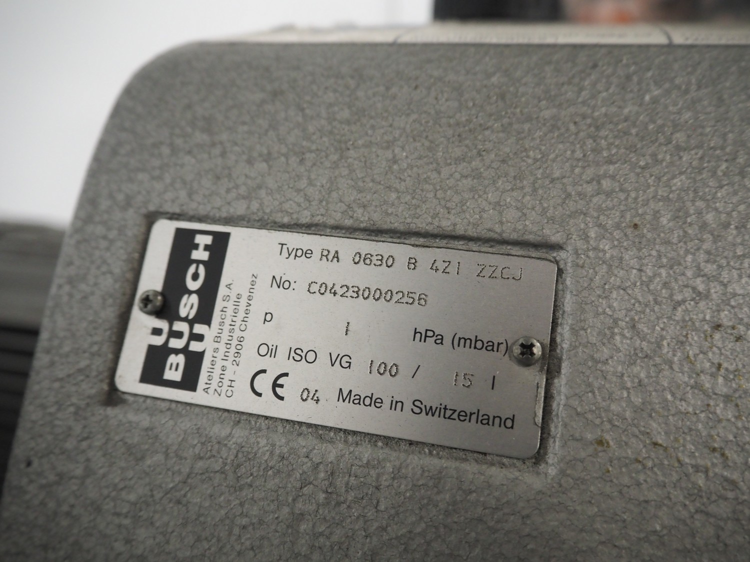 Busch vacuum pump, type: RA 0630 B 4ZI ZZCJ, number: C0423000256, year of construction: 2004, capacity: 630 m³/h, dimensions: 1700 mm x 1100 mm x 1100 mm.