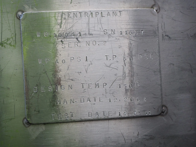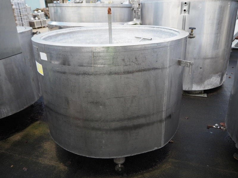 S/s double jacked tank used for broth, serial number: 11637, year of construction: 14.7.11, inside dimensions: Ø 1400 mm x 850 mm, total dimensions: Ø 1570 mm x 1500 mm.