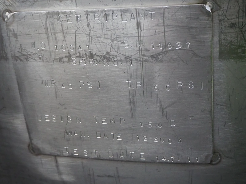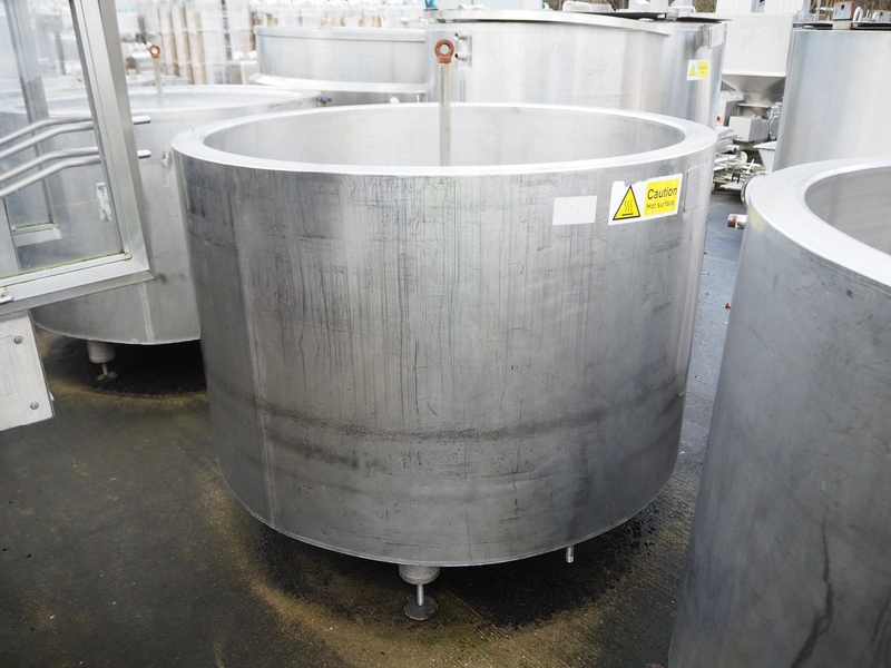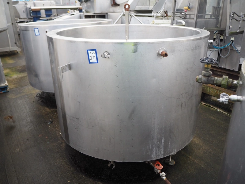 S/s double jacketed tank used for broth, serial number: 11637, year of construction: 14.7.11, inside dimensions: Ø 1400 mm x 850 mm, total dimensions: Ø 1570 mm x 1500 mm.