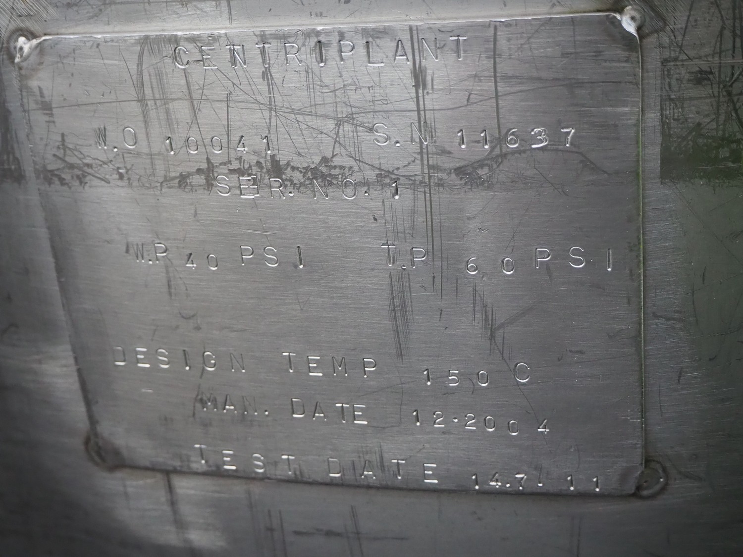 S/s double jacked tank used for broth, serial number: 11637, year of construction: 14.7.11, inside dimensions: Ø 1400 mm x 850 mm, total dimensions: Ø 1570 mm x 1500 mm.