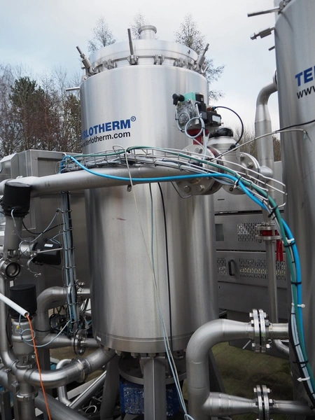 Terlet skid with 2 double jacked tanks, volume: (2x) 132 liter, total dimensions: 3500 mm x 1250 mm x 2550 mm.
