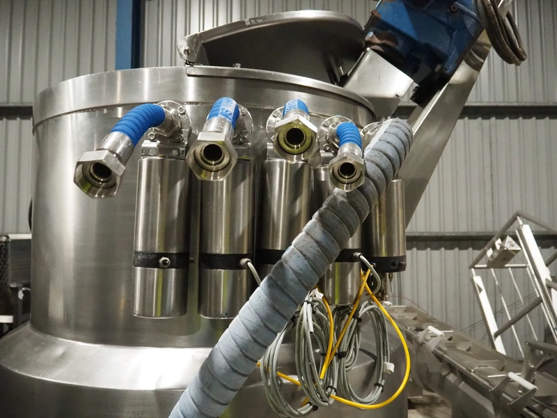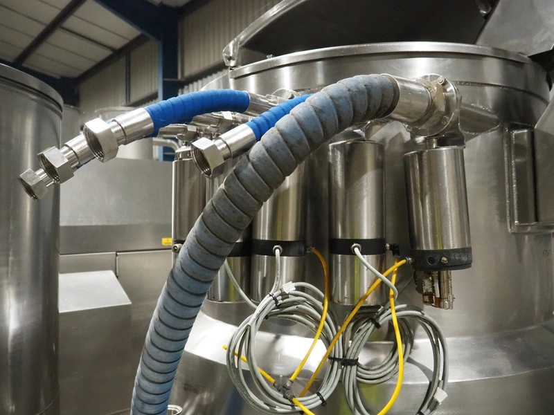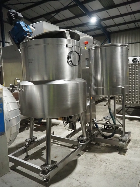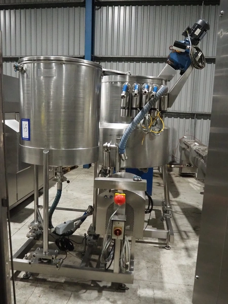 S/s skid with 2 mixing tanks on weighing cells with pump, capacity: 500 liter, dimensions: 2300 mm x 2000 mm x 2780 mm.