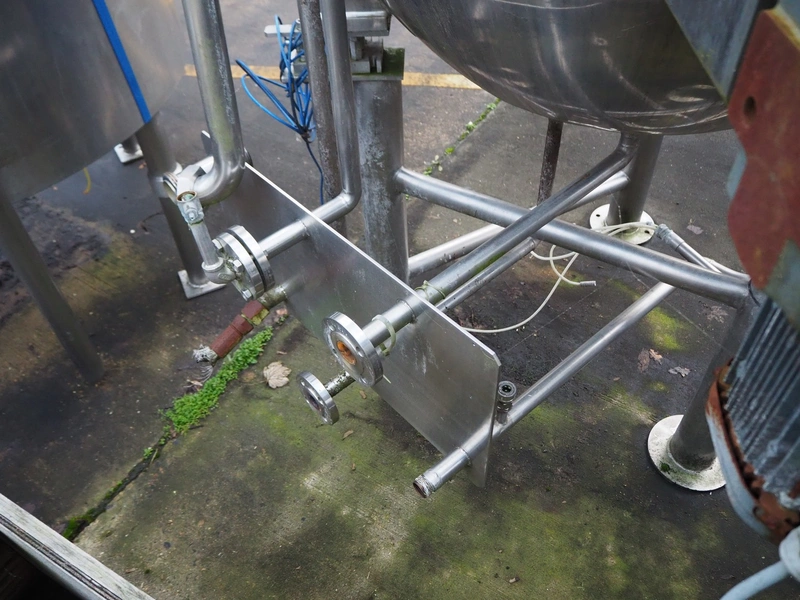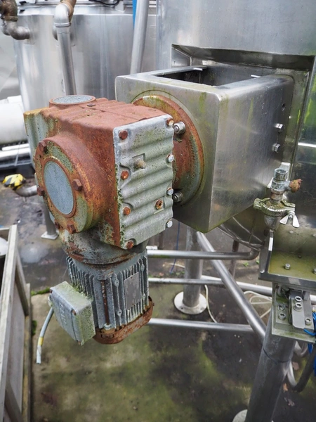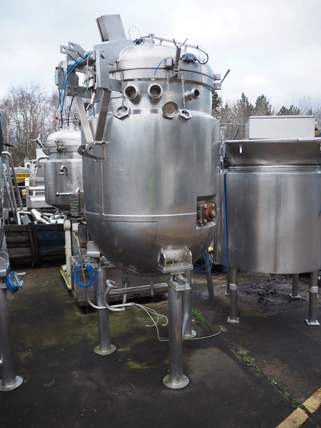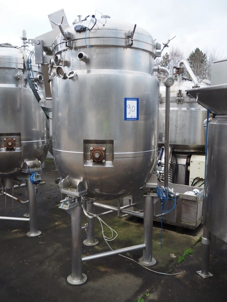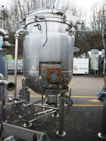 Giusti s/s double jacketed tank with mixing arm on weighing cells, serial number: M11664A, year of construction: 28.11.94, capacity: 500 liter, dimensions: 1450 mm x 1280 mm x 2700 mm.