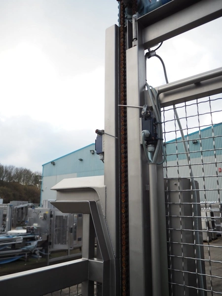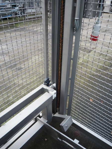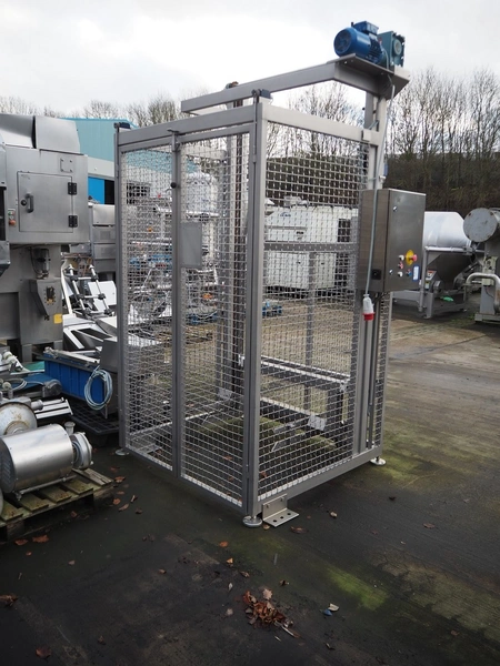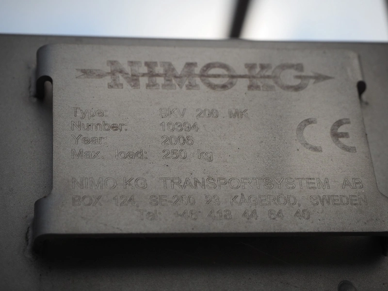 Nimo KG lifter for 200 liter meat bins, type: SKV 200 MK, number: 10394, year of construction: 2006, capacity: 250 kg, lifting height: 1800 mm, total dimensions: 1650 mm x 1310 mm x 1720 mm.