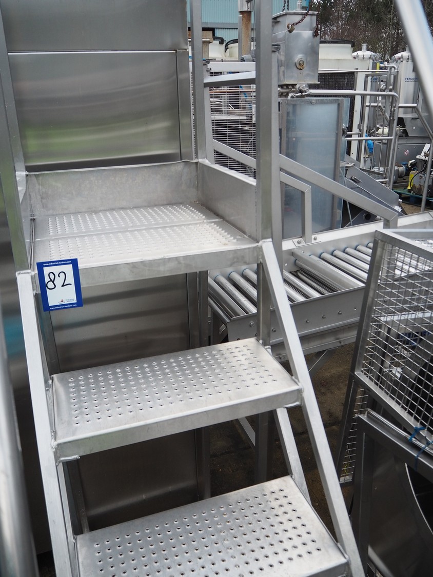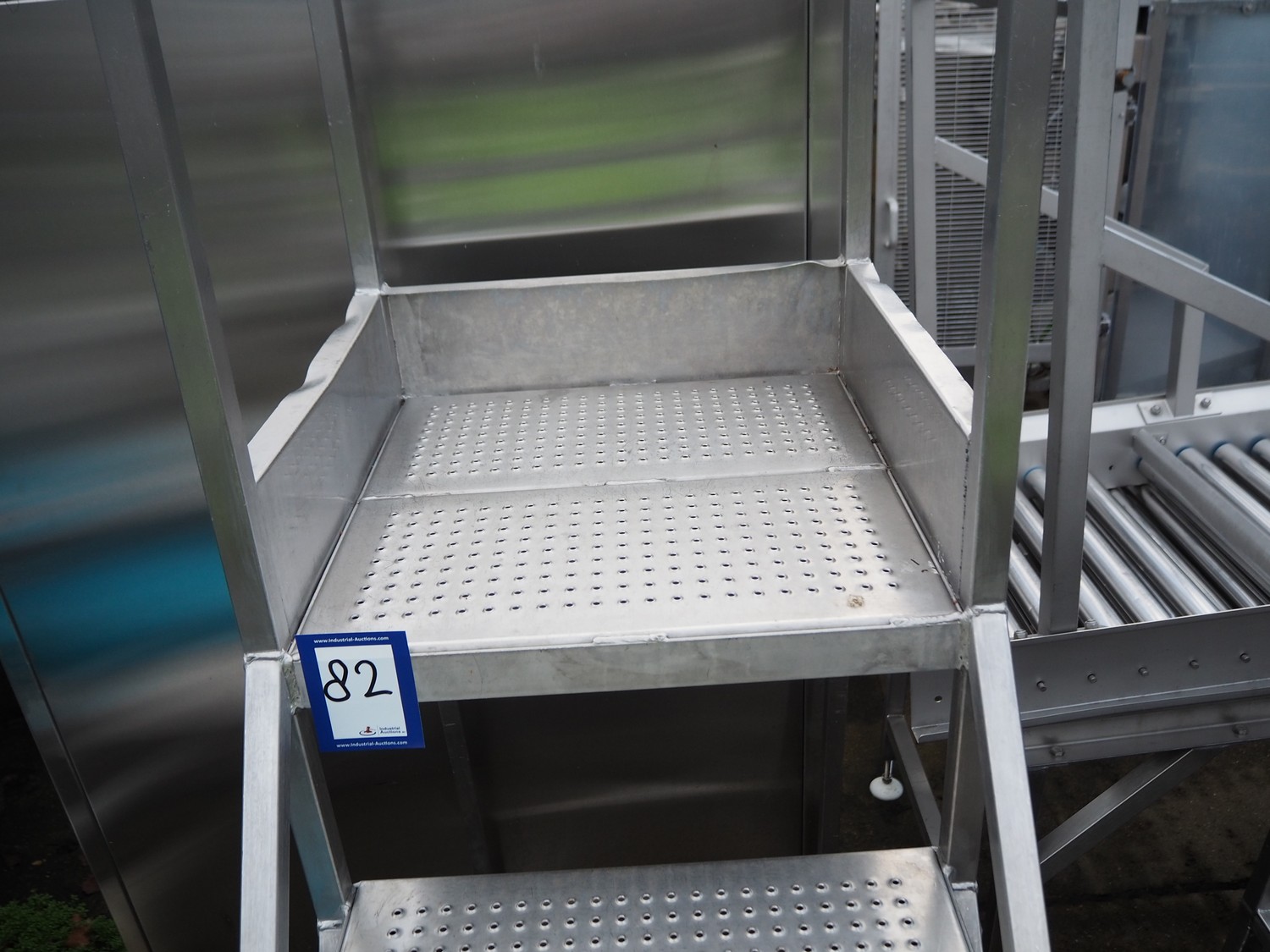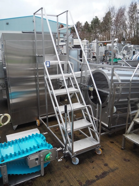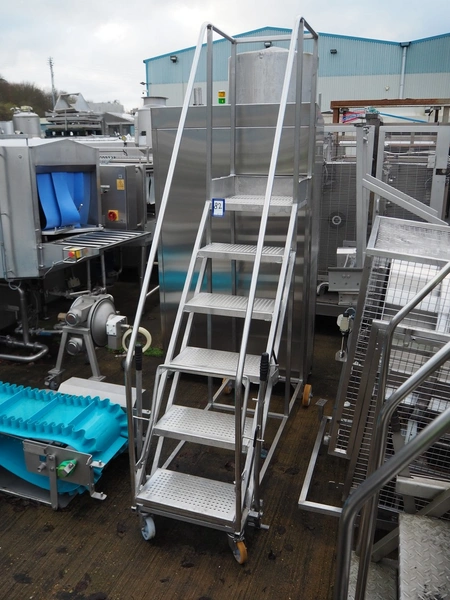 Mobile s/s stairs with 6 steps, working height: 1450 mm, total dimensions: 1600 mm x 600 mm x 2360 mm.