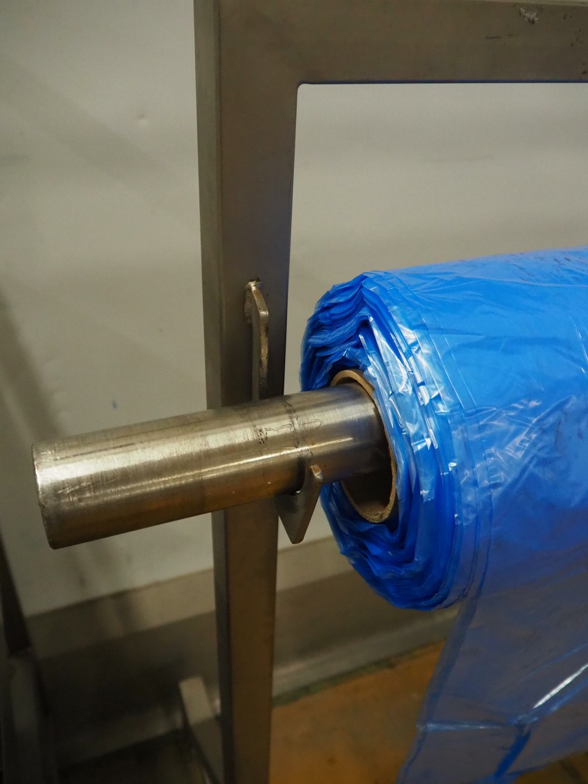 S/s dispenser for plastic sheets, working width: 1300 mm, total dimensions: 1550 mm x 600 mm x 1200 mm.