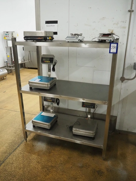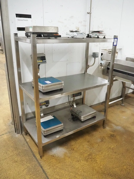 S/s rack with 3 floors, dimensions: 1200 mm x 600 mm x 1500 mm.