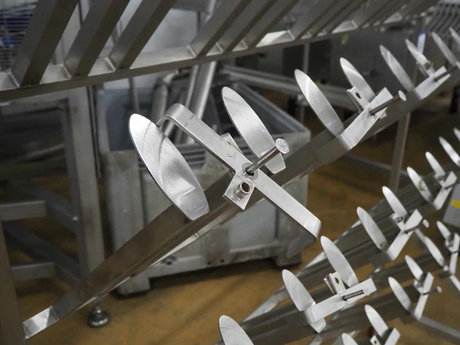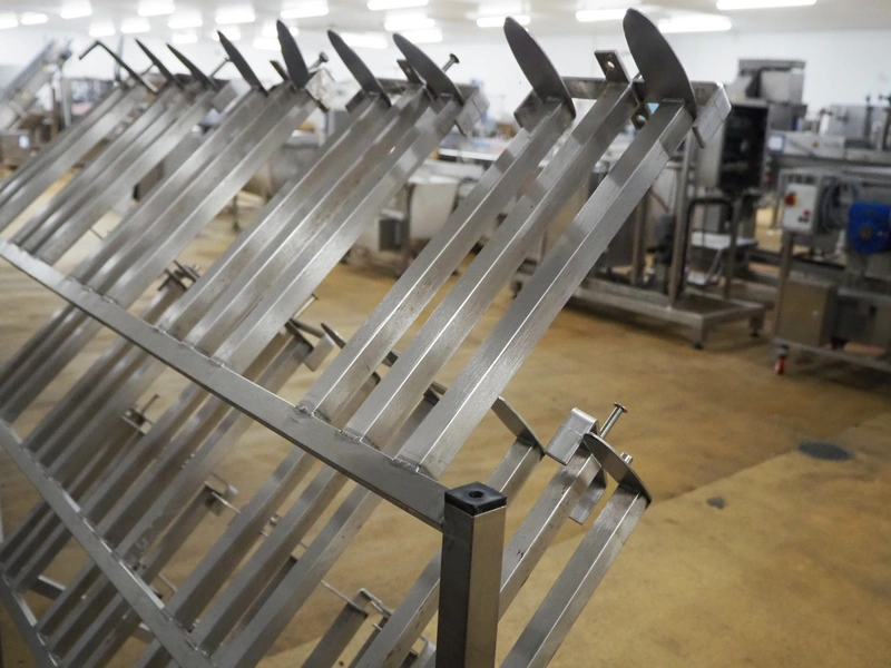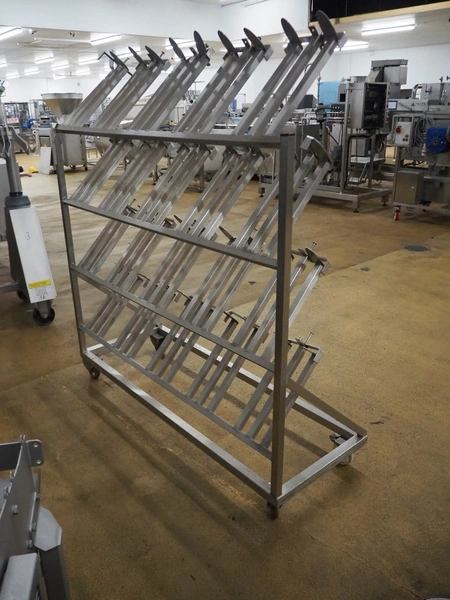 Mobile s/s rack with 20 pegs, peg length: 380 mm, total dimensions: 1550 mm x 510 mm x 1730 mm.