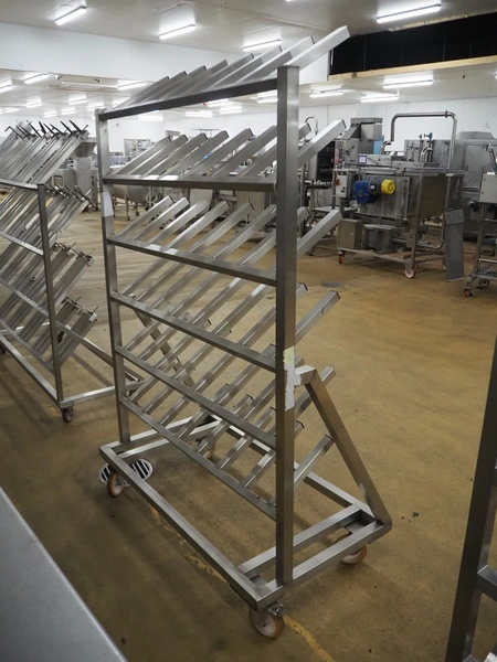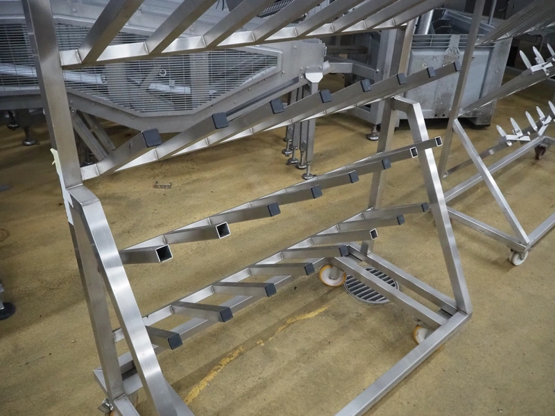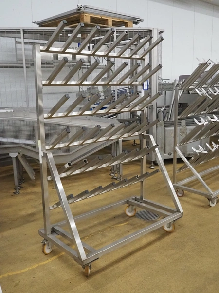 Mobile s/s rack with 48 pegs, peg length: 300 mm, total dimensions: 1240 mm x 650 mm x 1900 mm.