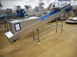Mobile elevating belt with infeed bunker, s/s frame, infeed clearance: 750 mm x 450 mm, plastic belt with dividers, belt width: 360…€ 1.000,000 bids24/02/2026 16:00