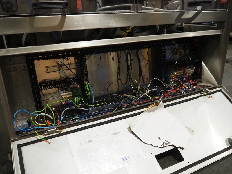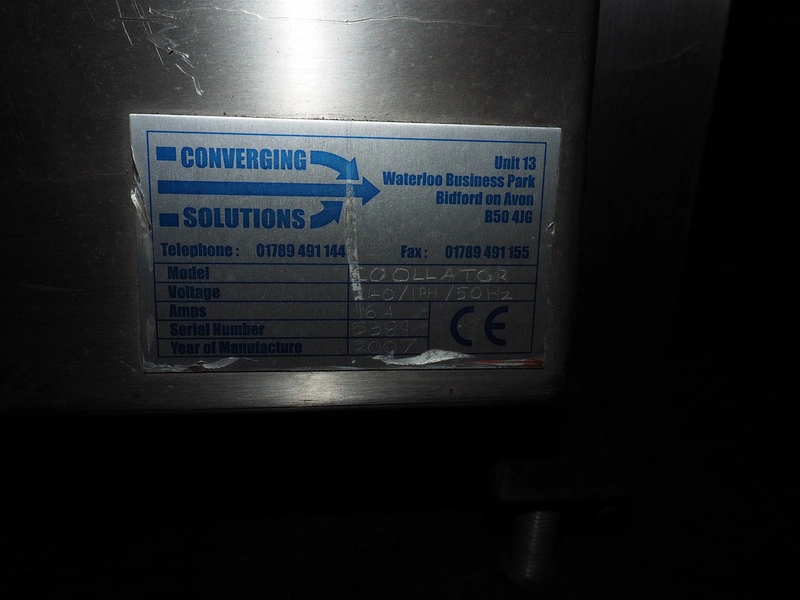 Converging solutions collator, model: Coollator, serial number: 5389, year of construction: 2007, 240 V, 1 Ph, 50 Hz, 16 A, plastic belt, belt width: 180 mm, clearance: 140 mm x 170 mm, total dimensions: 2200 mm x 850 mm x 1300 mm. Incomplete.