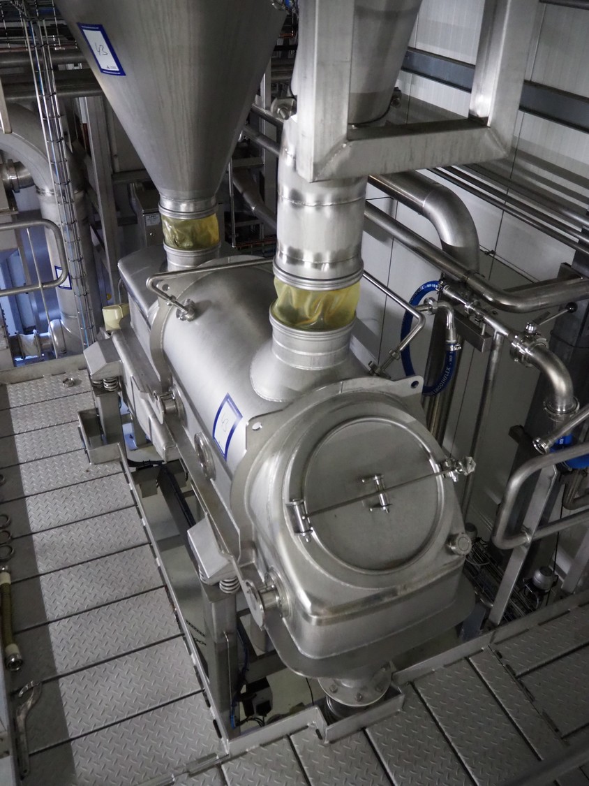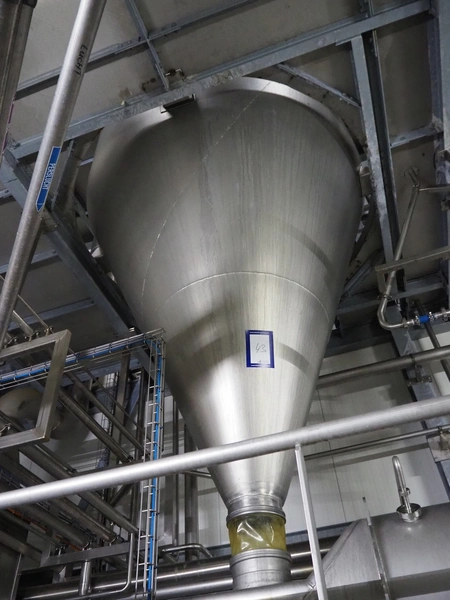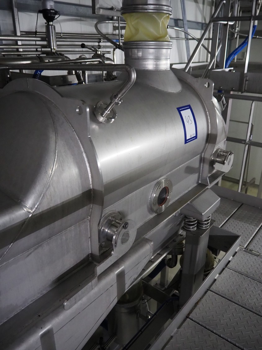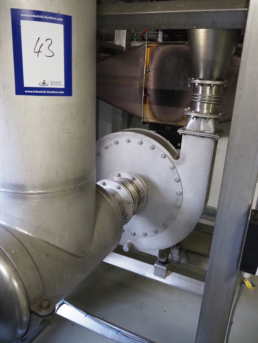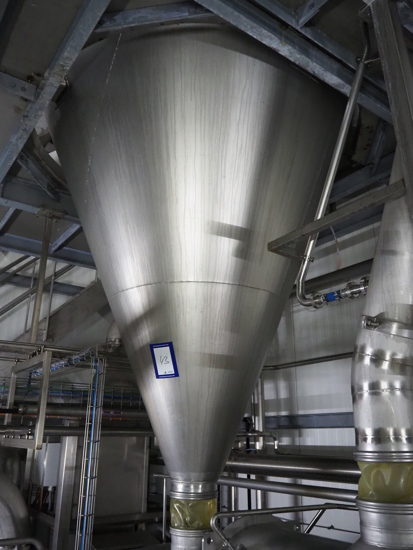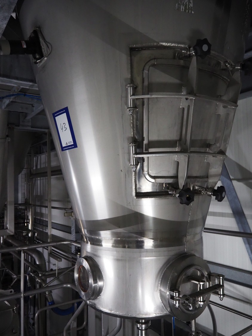 Dutch Process Technology spray drying installation, consisting of: spray dryer, bag filter, drying bed, Reitz blowers, Cotes dehumidifier, model: C65, serial number: 19.14655, Pomac centrifugal pump, DTP switch cabinet, s/s platforms and steel construction, total dimensions: 9600 mm x 5000 mm x 11500 mm.